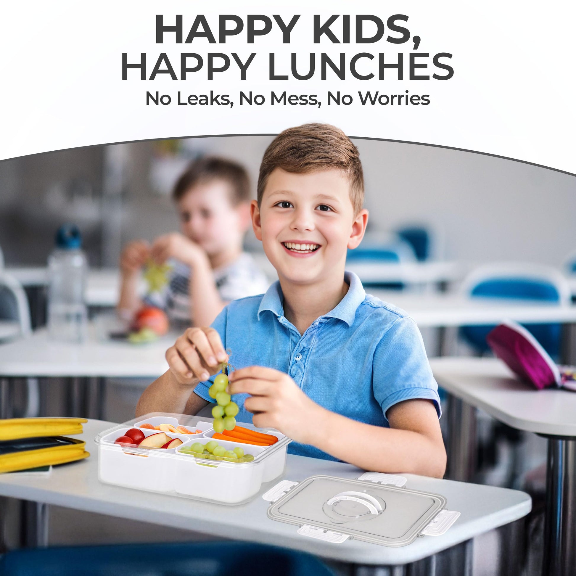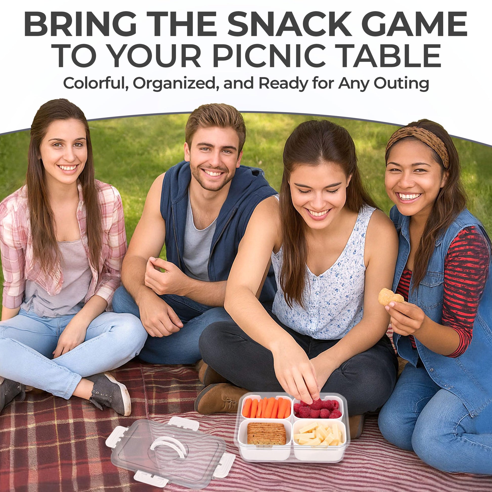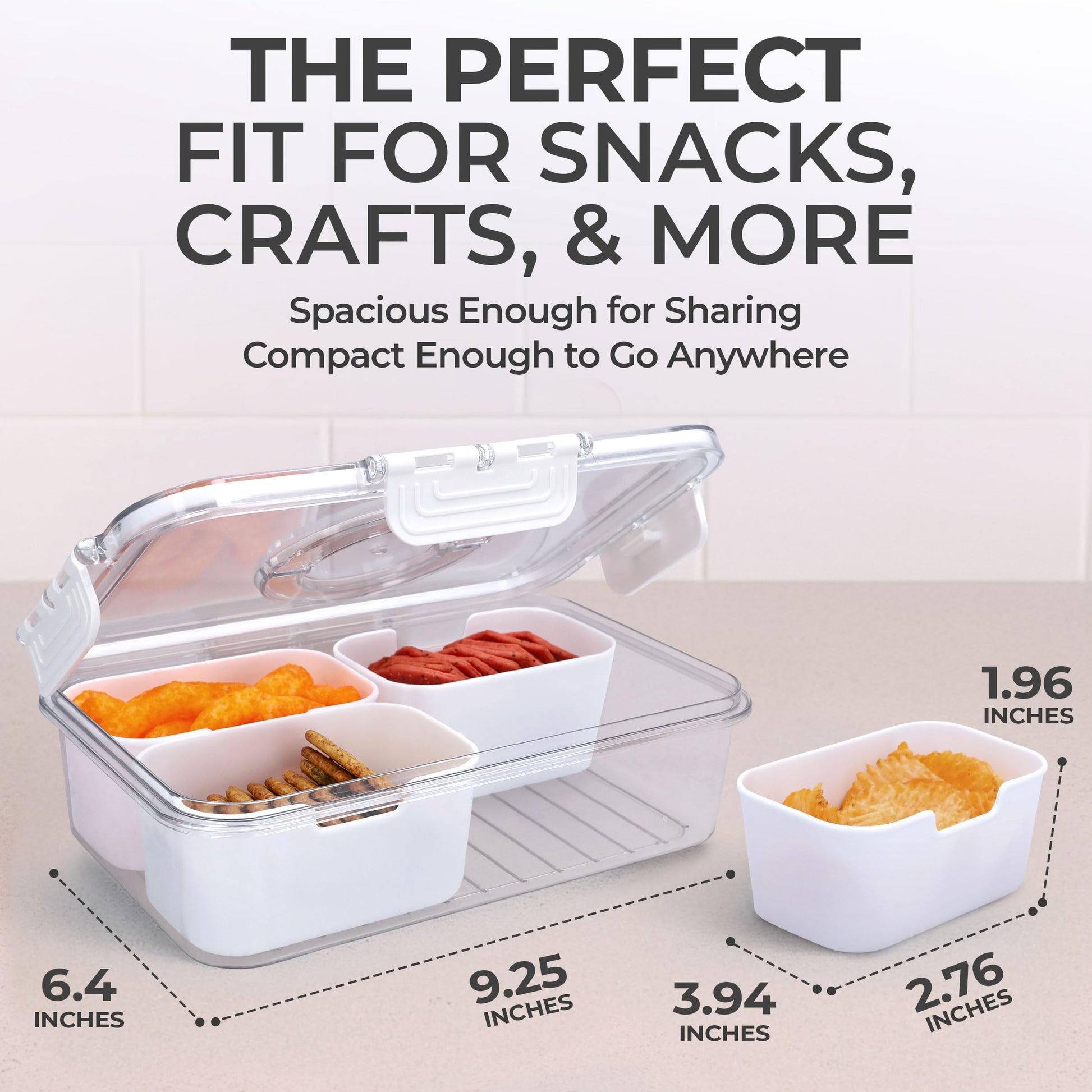 KEYVOZ Snackle Box Container with Lid- Travel Charcuterie Box with Handle - Organizer for Candy, Fruit, Nuts, Veggies, Snacks, Beach Essentials, Portable Lunch Box (Bright White, Small)