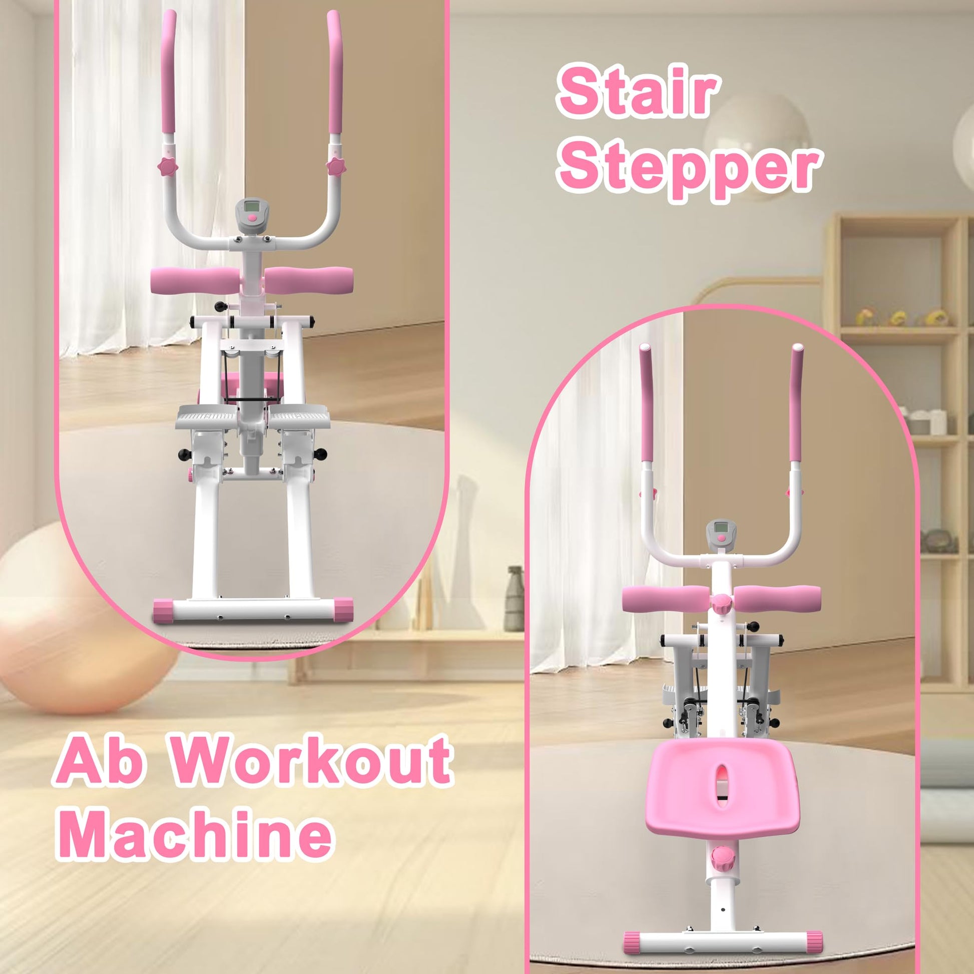 KINMAC 2 in 1 Stair Stepper & Ab Workout Machine - Multi-Function Trainer-Upgrade High-Efficiency Stairmaster & Ab Trainer Machine Full-Body Exercise Equipment for Home Gym Exercise -White Pink