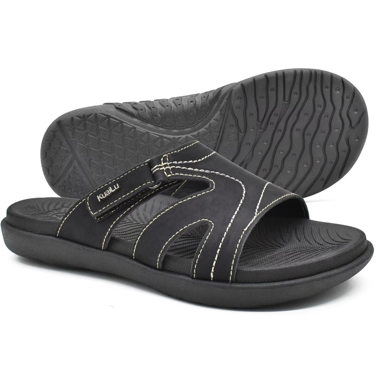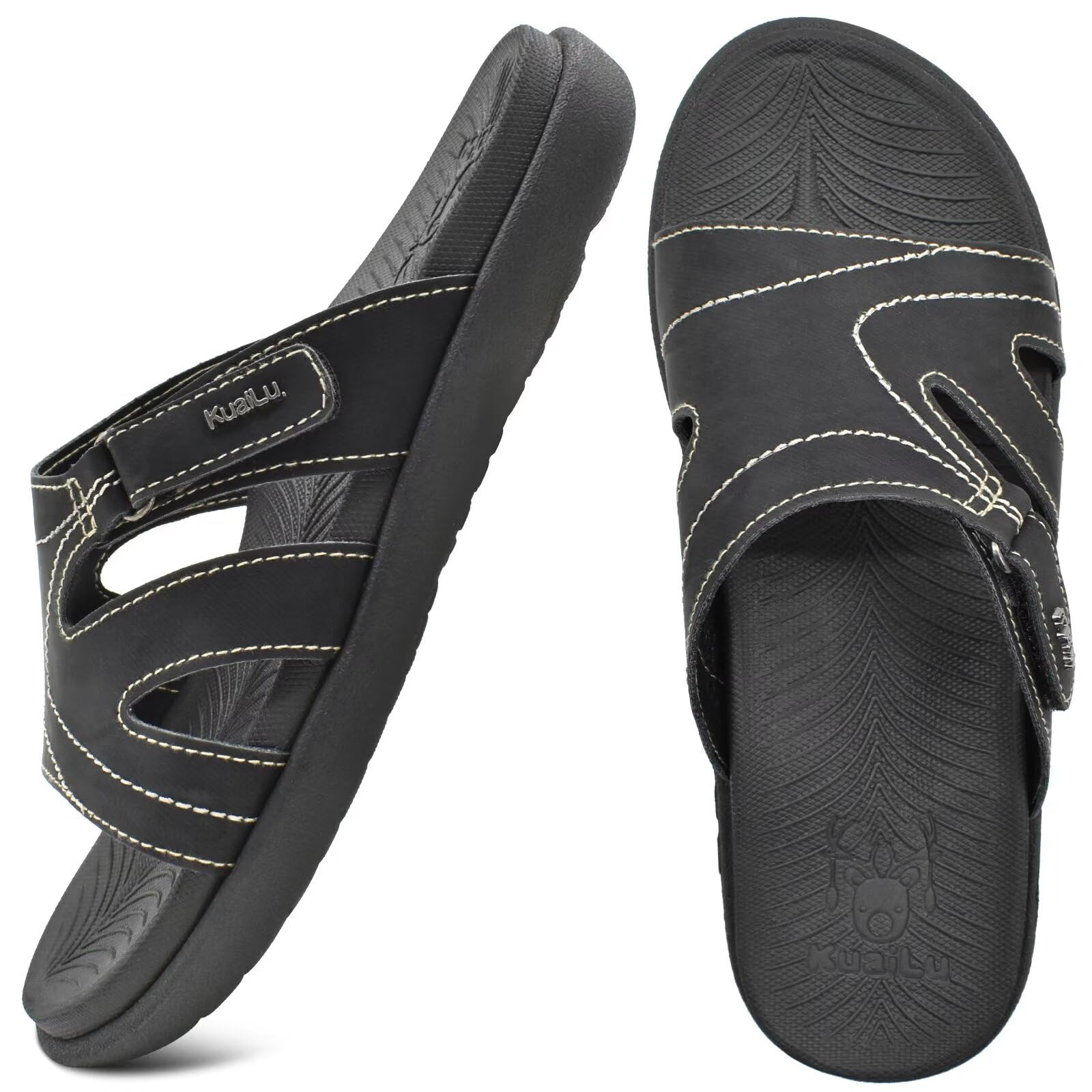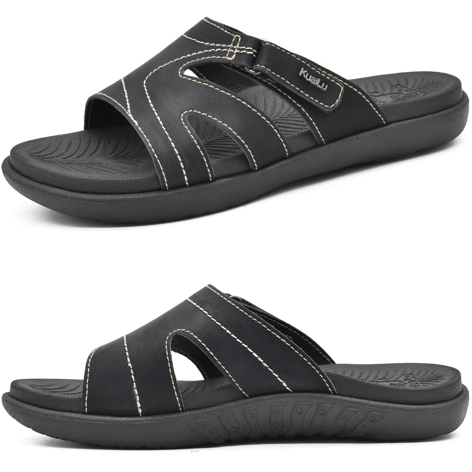 KuaiLu Womens Fashion Orthotic Slides Ladies Lightweight Athletic Yoga Mat Sandals Slip On Thick Cushion Slippers Sandals With Comfortable Plantar Fasciitis Arch Support, Black, 10.5