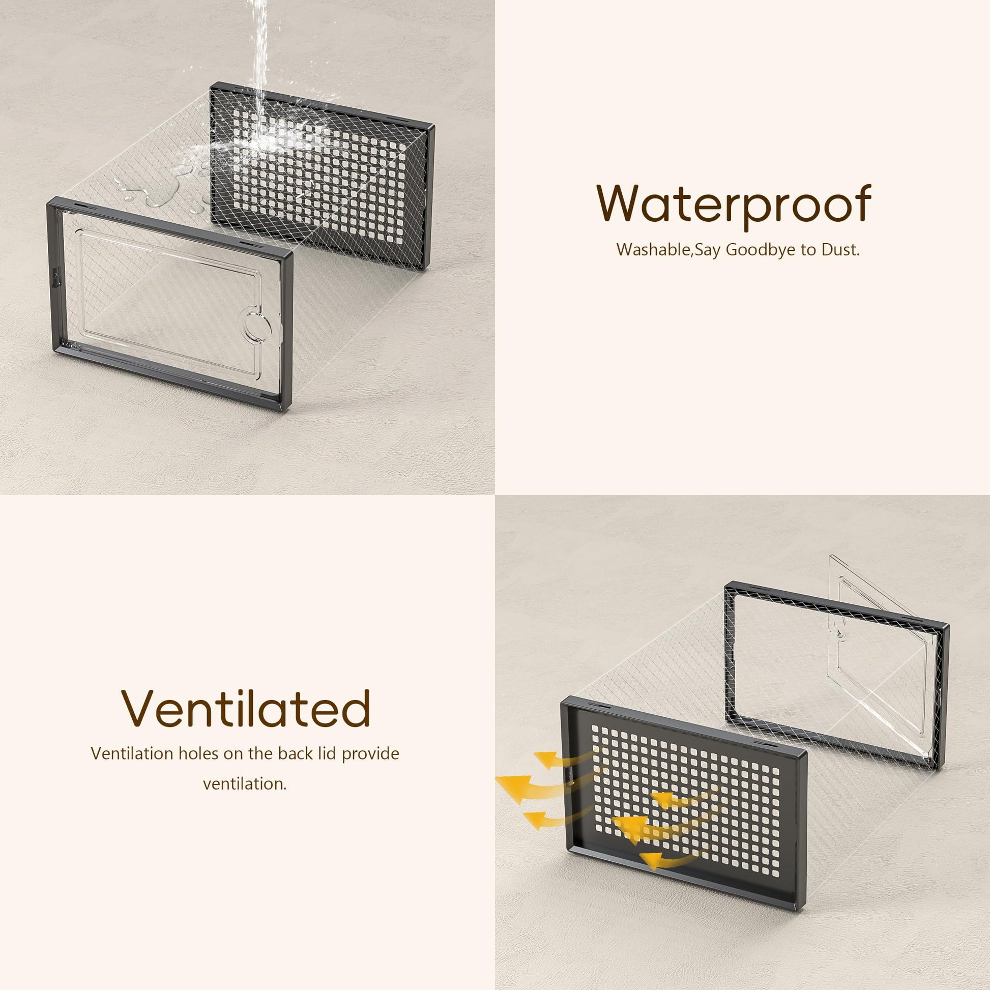 Kuject X-Large Shoe Storage Boxes Organizers Clear Plastic Stackable 12 Pack, Shoe Rack & Holder Substitute, Sneaker Containers, Toy Storage Organizer Bins for Entryway, Closet, Under Bed, Black