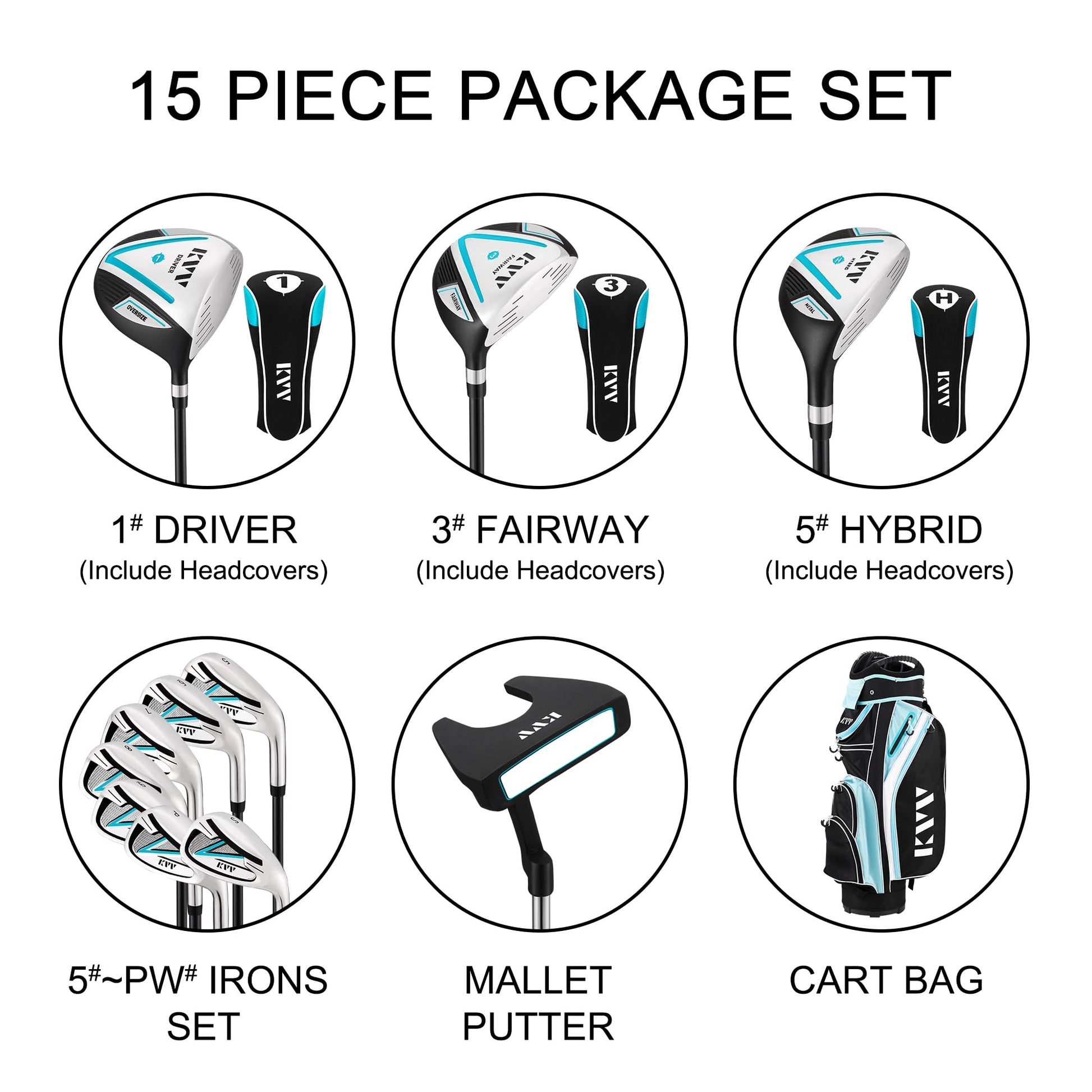 KVV Women’s Complete Golf Clubs Package Set Includes Driver, Fairway, Hybrid, 5#-P# Irons, Putter, Cart Bag, Head Covers, Right Handed
