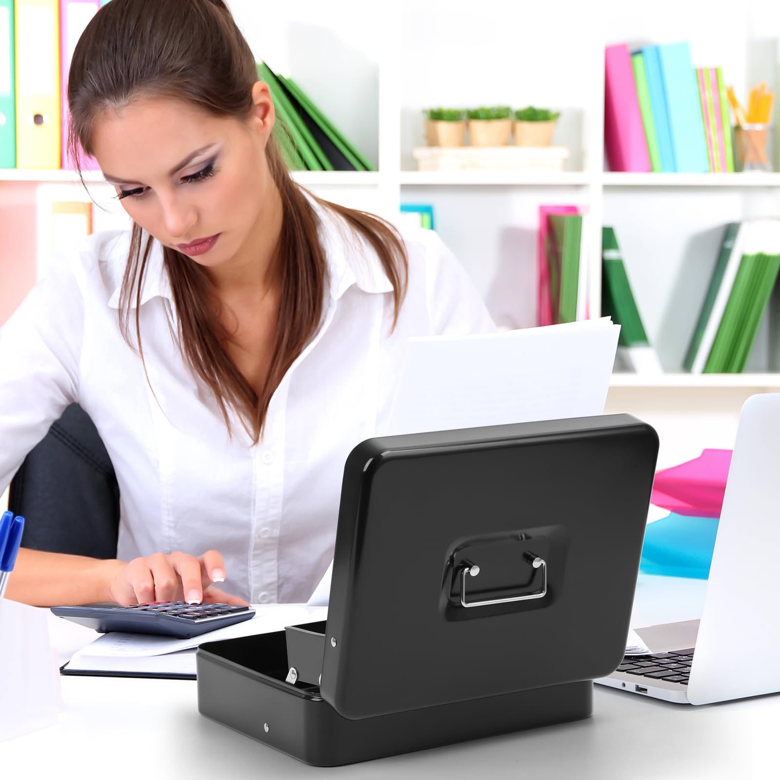 KYODOLED Locking Cash Box with Lock,Money Box with Cash Tray,Lock Safe Box with Key,Money Saving Organizer,11.81Lx 9.45Wx 3.54H Inches,Black XL Large