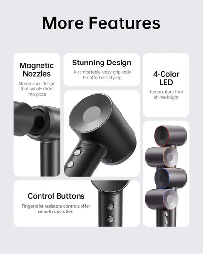 Laifen Swift Hair Dryer, 110,000 RPM High Speed Motor & 200 Million Negative Ions, with Magnetic Nozzle (Black?Glass Fiber & Nylon)