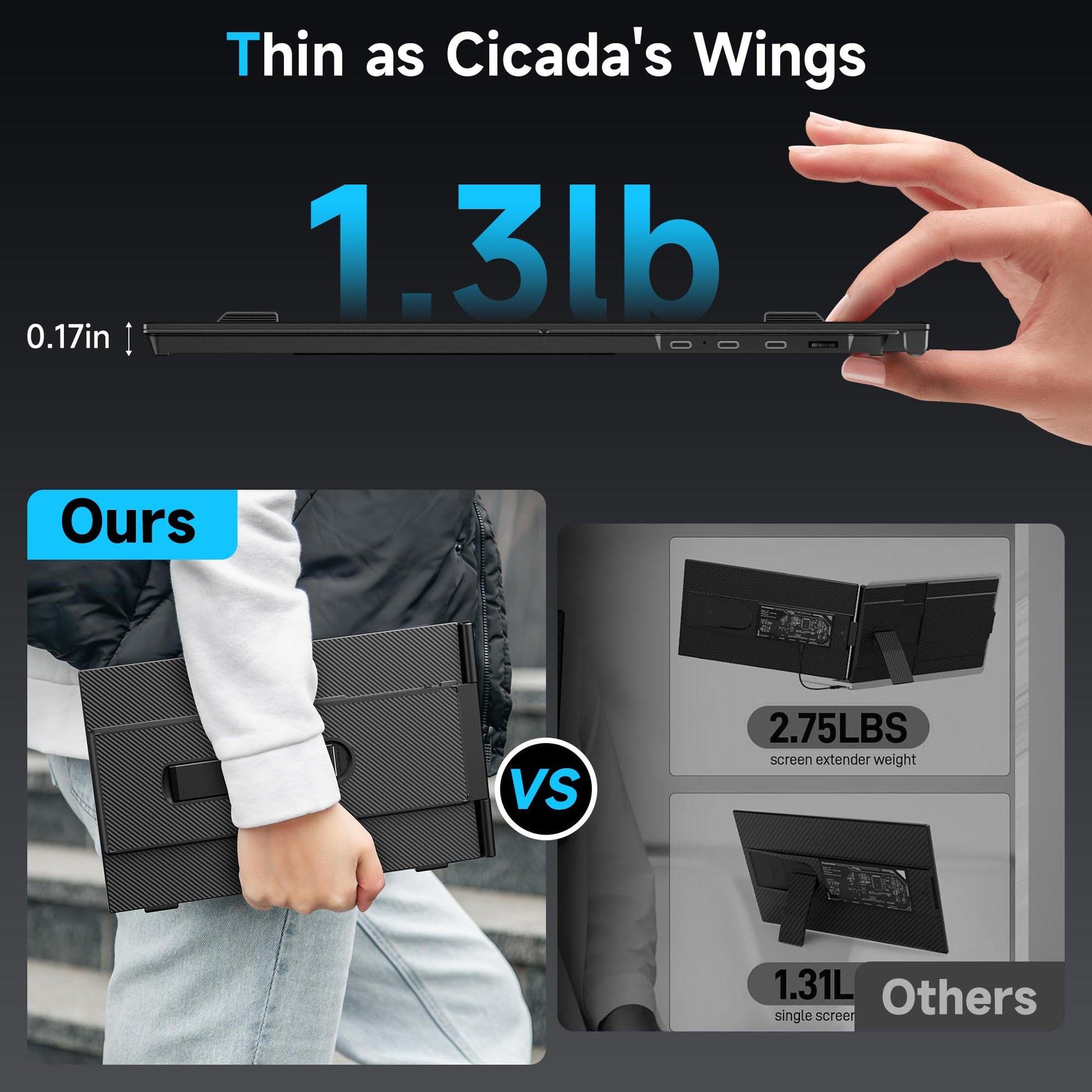 Laptop Screen Extender 0.17" Ultra-Thin, 14.2" FHD 1080P IPS Portable Monitor for Laptop, Dual Screen Travel Monitor Extender Suitable for 13"-17.3" Plug & Play for Windows/Mac/Android/Switch/PS-5