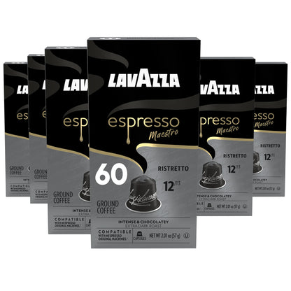 Lavazza Espresso Maestro Ristretto Aluminum Capsules Compatible with Nespresso* Original Machines, Dark Espresso Roast, Arabica and Robusta Blend (60 Capsules)