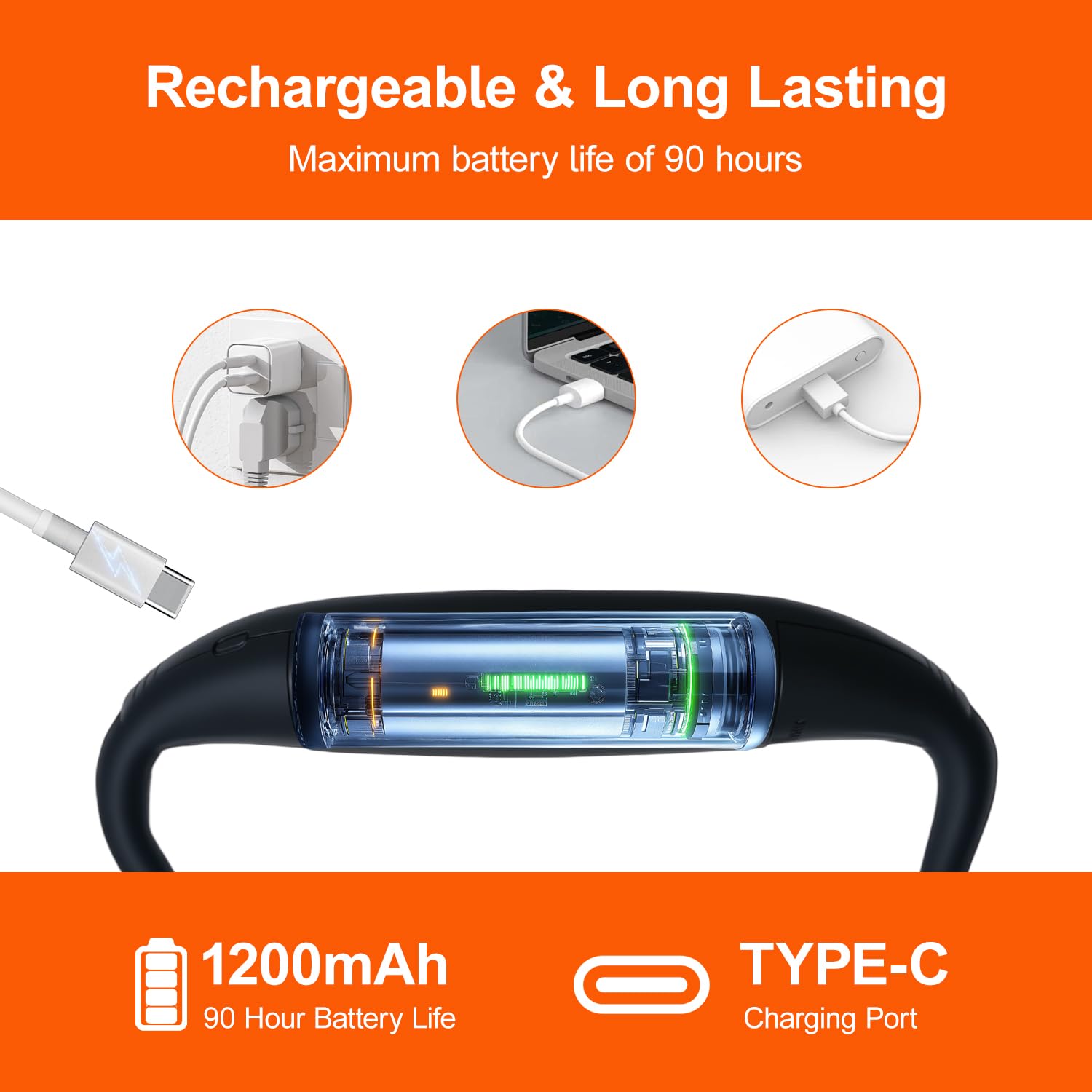 LED Rechargeable Neck Reading Light, Suitable for Reading Books with 3 Color Temperatures, 90 Hour Long-Lasting Recharging Lamp, Ergonomic, Suitable for Reading, Weaving, and Repairing
