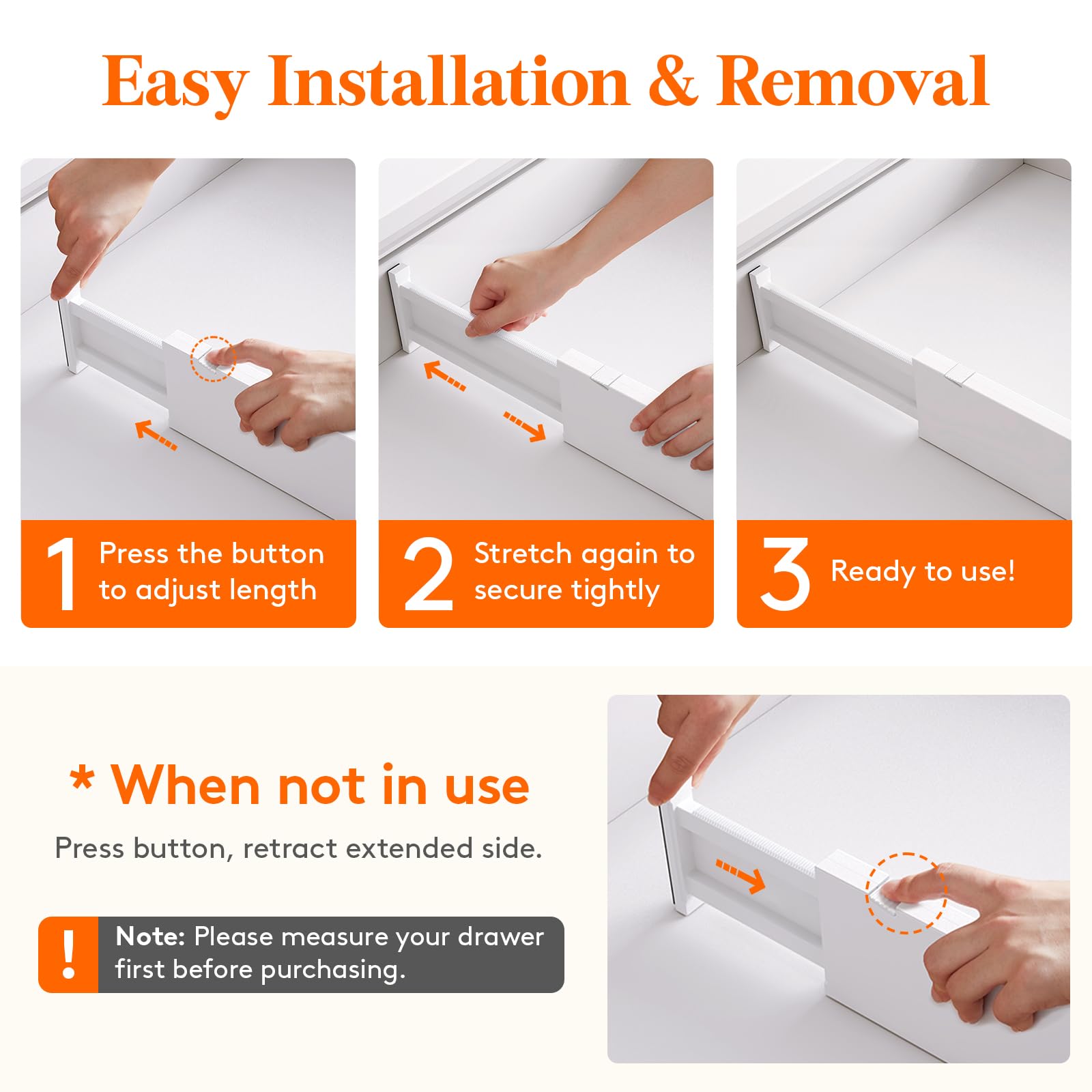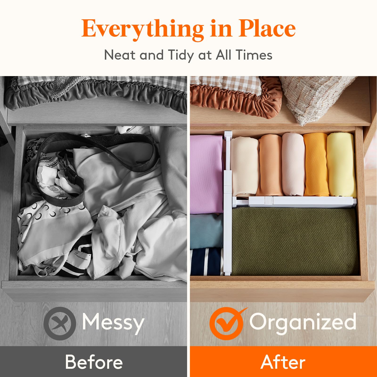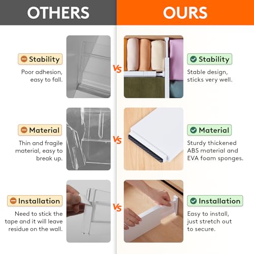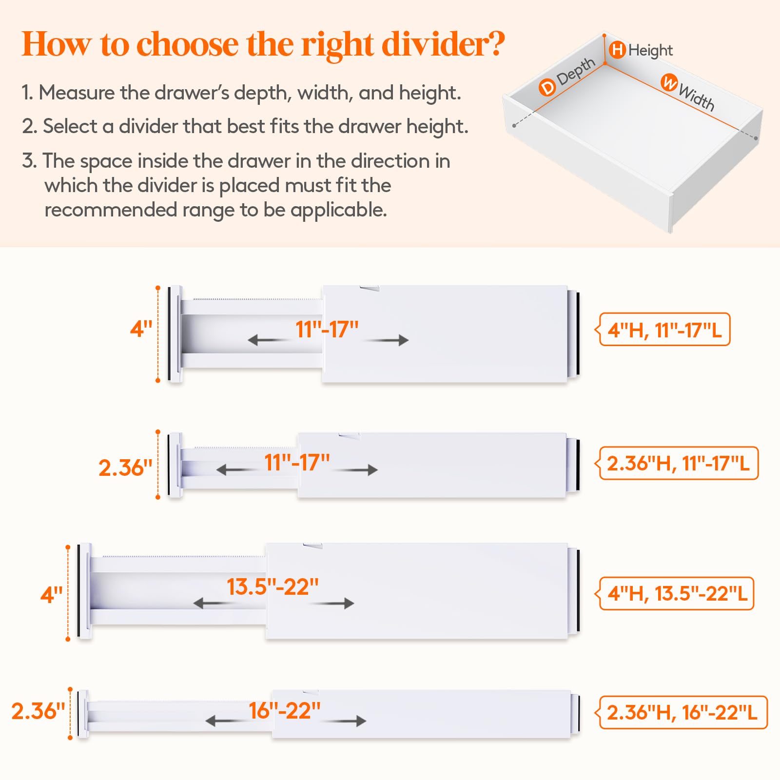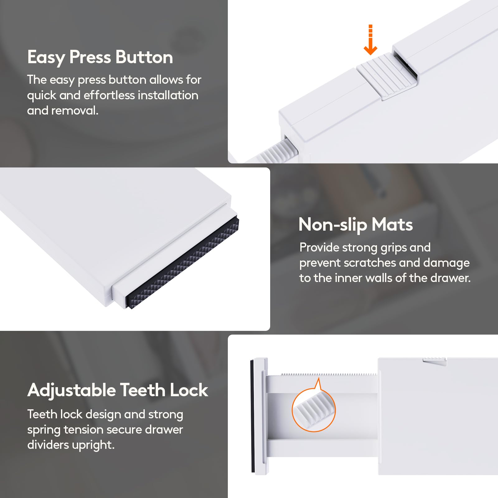 Lifewit 5 Pack 4" High Drawer Dividers 28-43.5cm/11-17" Adjustable Drawer Organizer for Clothes/Utensils, Expandable Drawer Separator in Dresser/Kitchen/Bedroom/Office Organization & Storage White