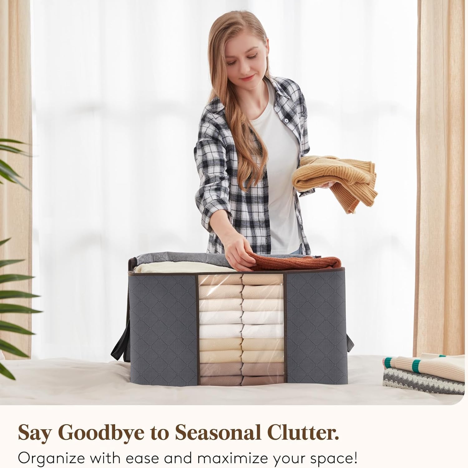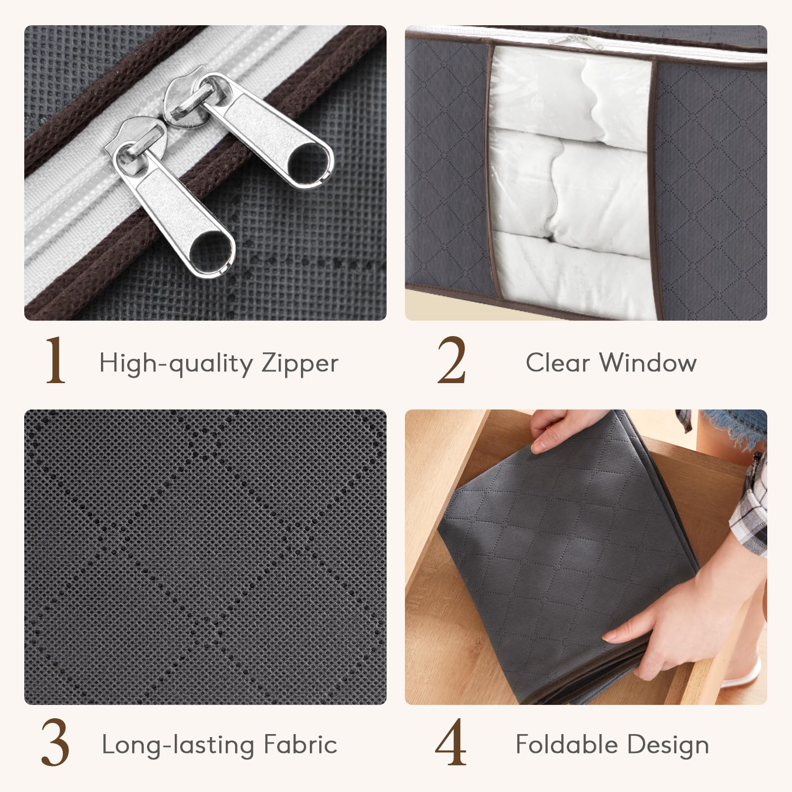 Lifewit 90L Large Storage Bags, 6 Pack Closet Organizers and Storage, Clothes Storage Bins with Lids, Foldable Storage Containers with Reinforced Handles for Clothing, Blanket, Bedding, Comforter Gray