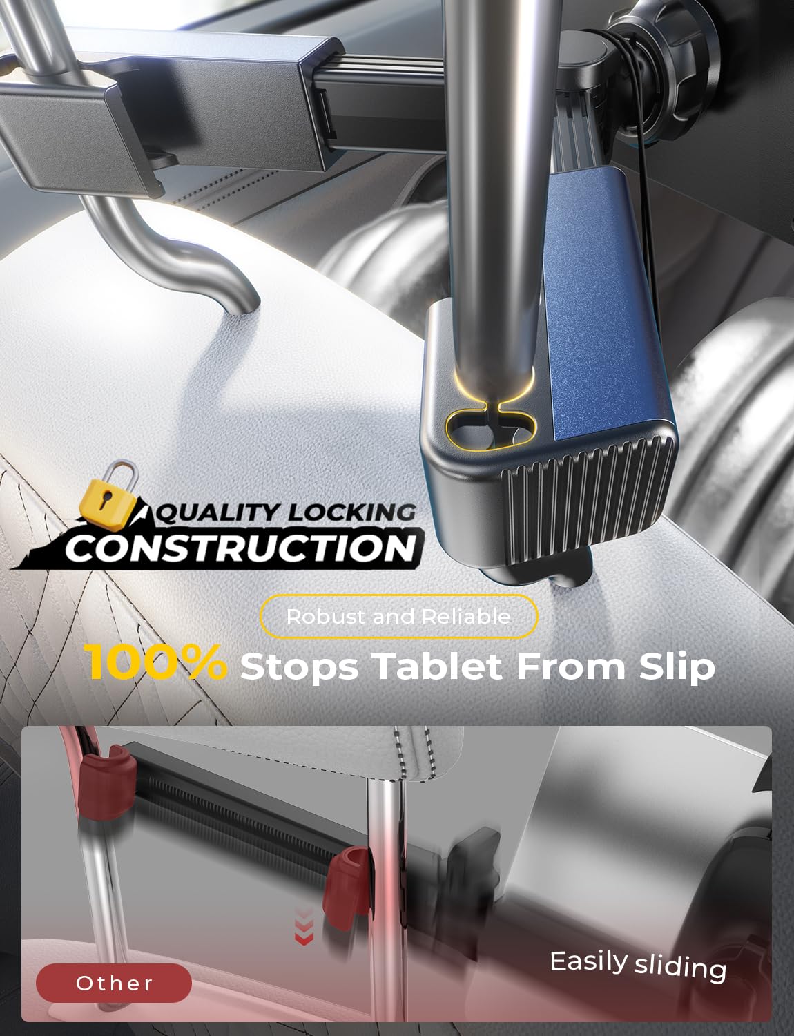 LISEN Tablet iPad Holder for Car Mount Headrest Must Have, iPad Car Holder Back Seat Travel Accessories Long Road Trip Essentials for Kids Adults Fits All 4.7-12.9" Devices & Headrest Rod Black