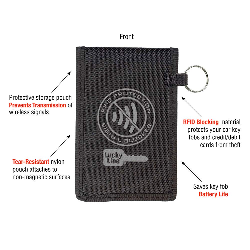 Lucky Line RFID Signal Blocking Key Hider Pouch Wallet with Adhesive & Velcro, Anti-Theft Storage Key FOB Battery Saver Credit Card Identity Protection (91801)