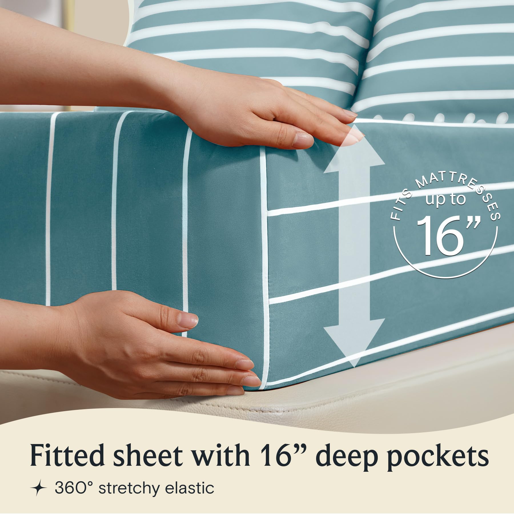 LuxClub 4 PC Queen Size Sheet Set Bed Sheets, Breathable Luxury Deep Pockets 16" Wrinkle Free Cooling Sheets Machine Washable Hotel Bedding (Queen, Striped Light Blue)