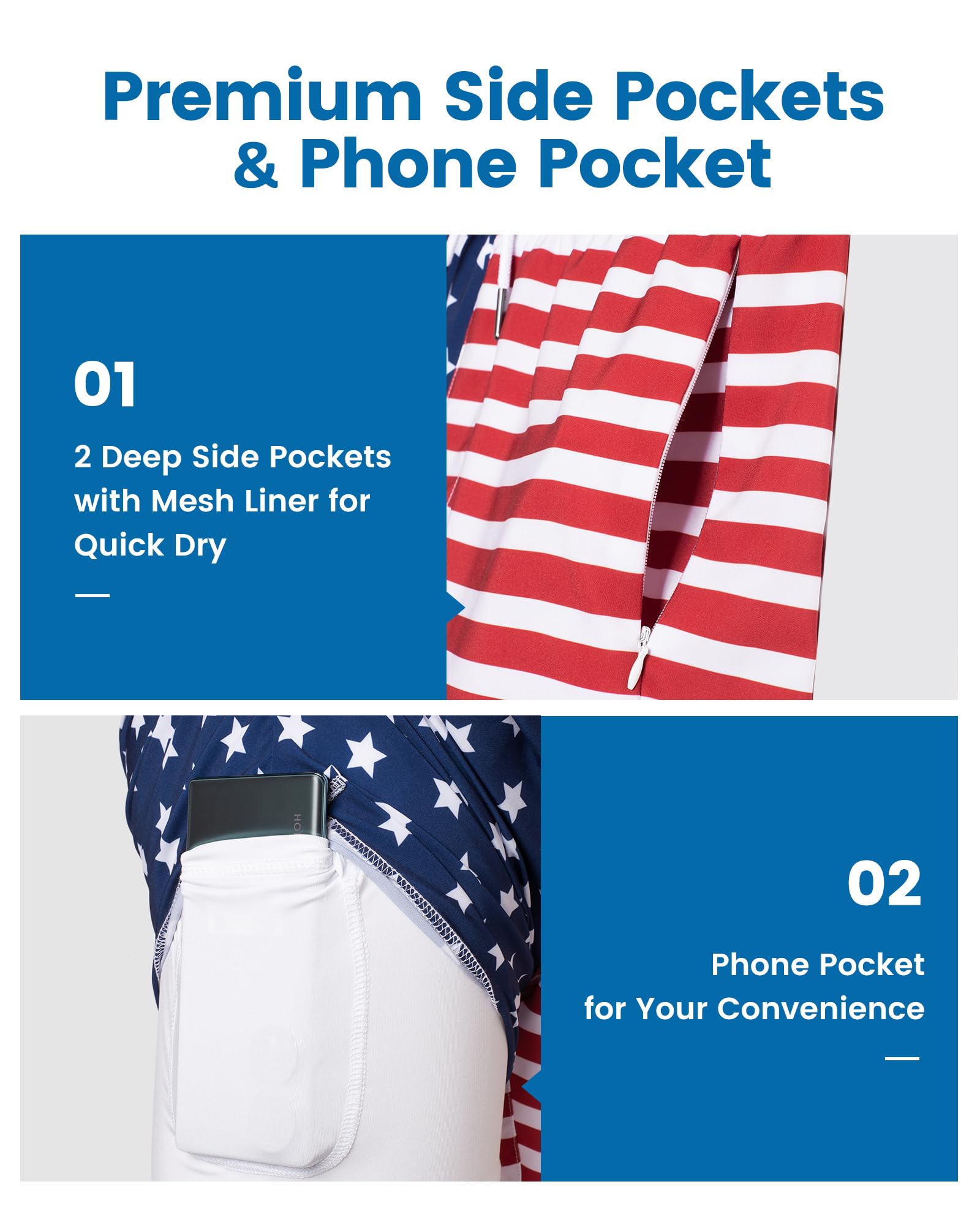 maamgic 2 in 1 Mens Swim Trunks 7 Inch Swim Shorts Swim Suits Board Shorts American Flag