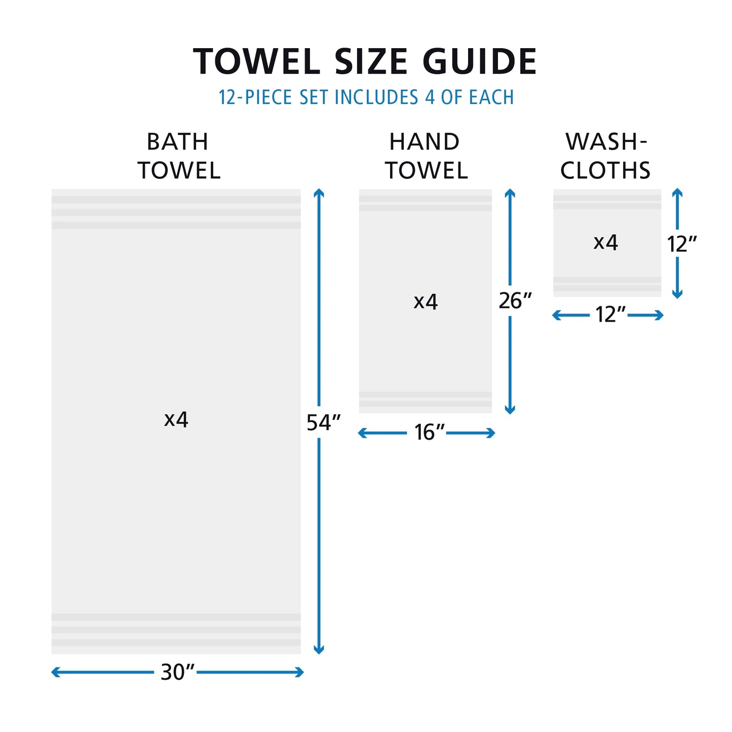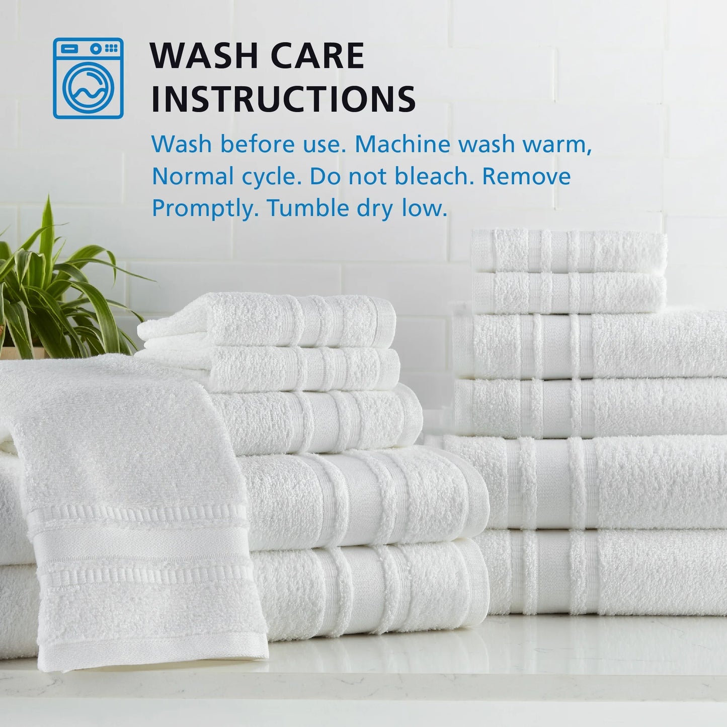 Mainstays 100% Cotton 12-Piece White Towel Set, Soft & Absorbent