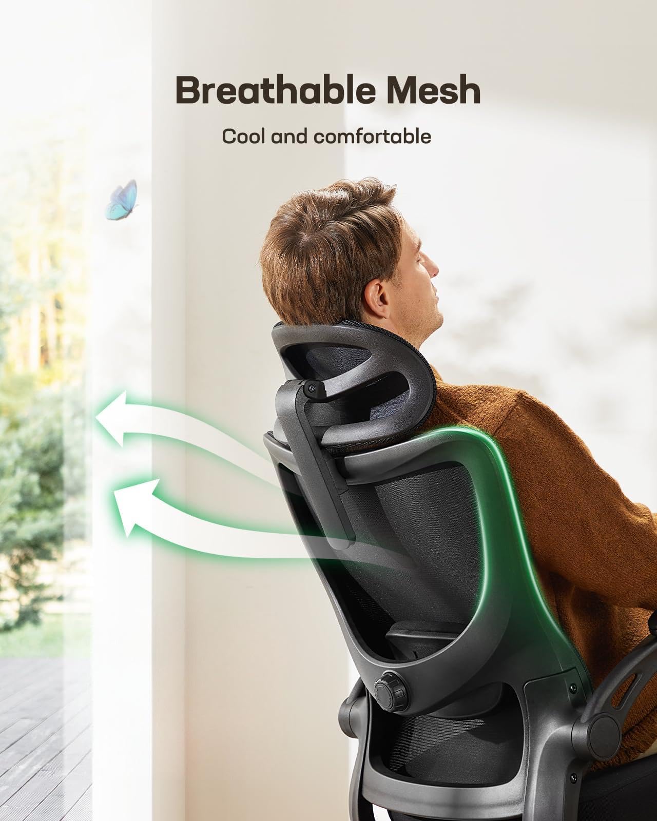 Marsail Ergonomic Office Chair: Office Desk Chair with High Back Mesh and Adjustable Lumbar Support Rolling Work Swivel Task Chairs with Wheel 3D Armrests and Headrest