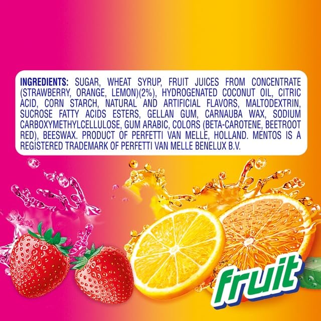 Mentos Candy, Mint Chewy Candy Roll, Fruit, Non-Melting, Holiday, Party, Concessions, Office, 14 Pieces (Bulk Pack of 15) - Packaging May Vary