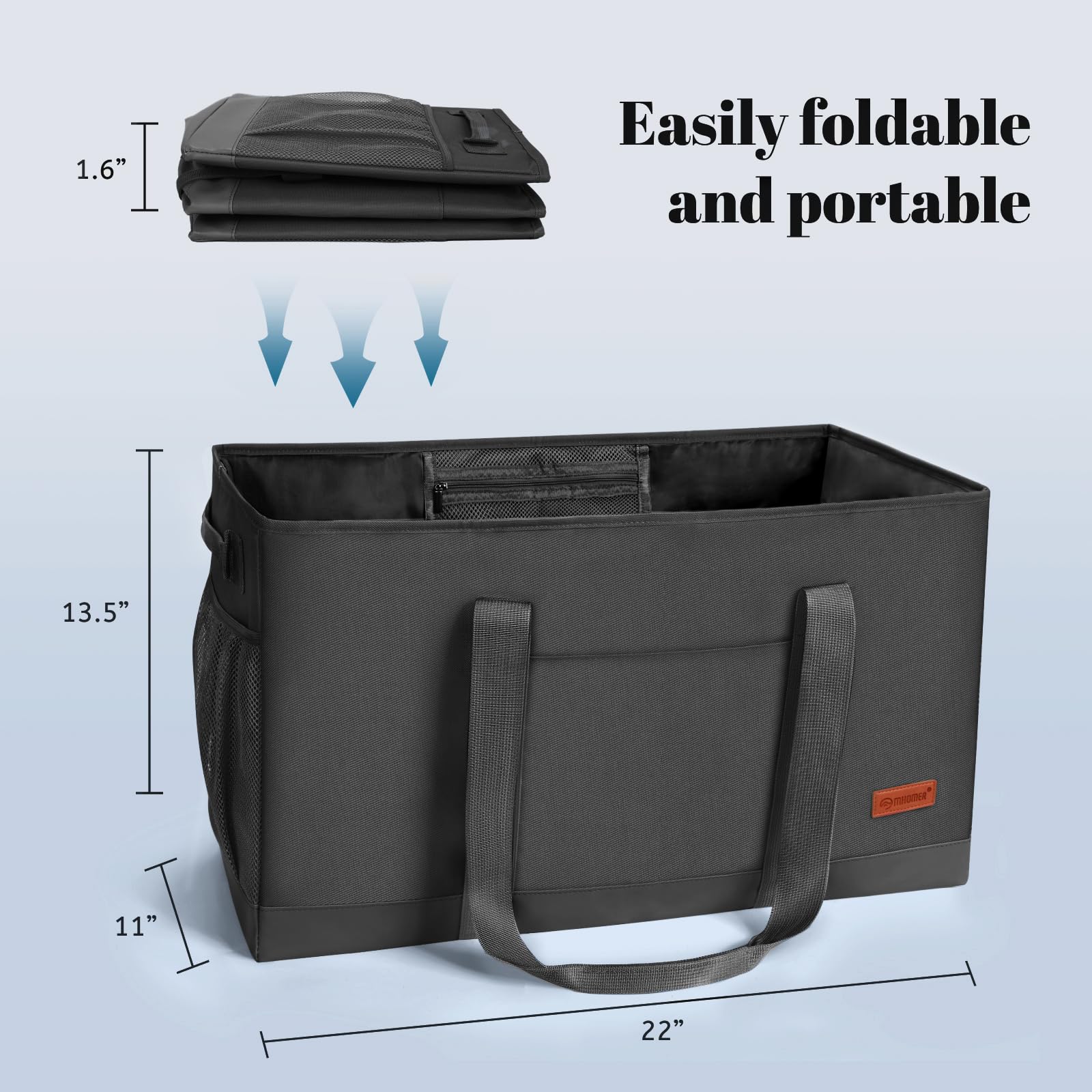 MHOMER Reusable Upright Grocery Bags Extra Waterproof Large Utility Tote Bag with Carrying Handles Foldable Shopping Bags Reinforced Bottom and Side Durable Oxford Fabric Classic Carbon Black