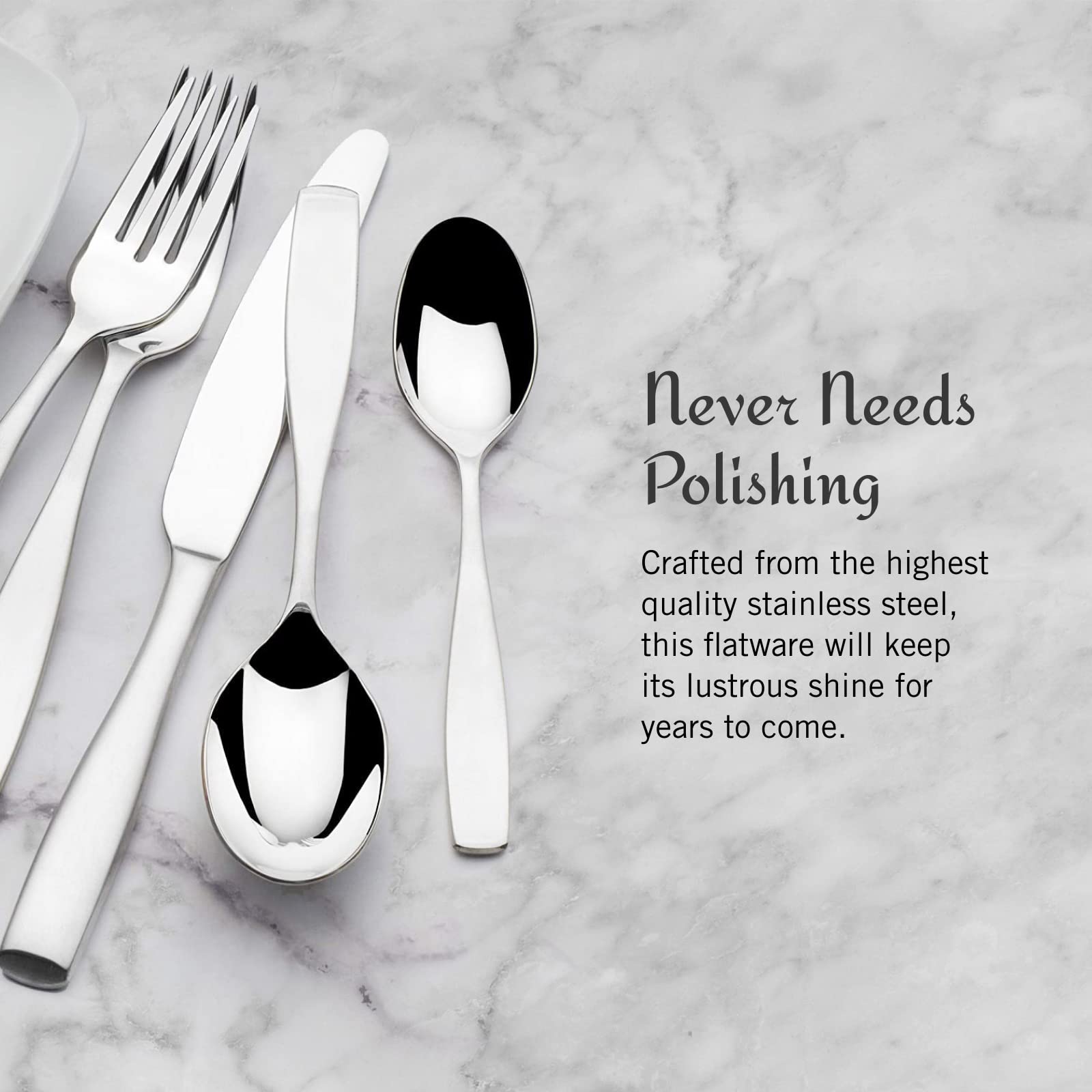 Mikasa Satin Loft 65-Piece Flatware Set for 12, 18/10 Stainless Steel Silverware with Forks, Knives, Spoons, and Serving Utensils, Durable and Elegant Design