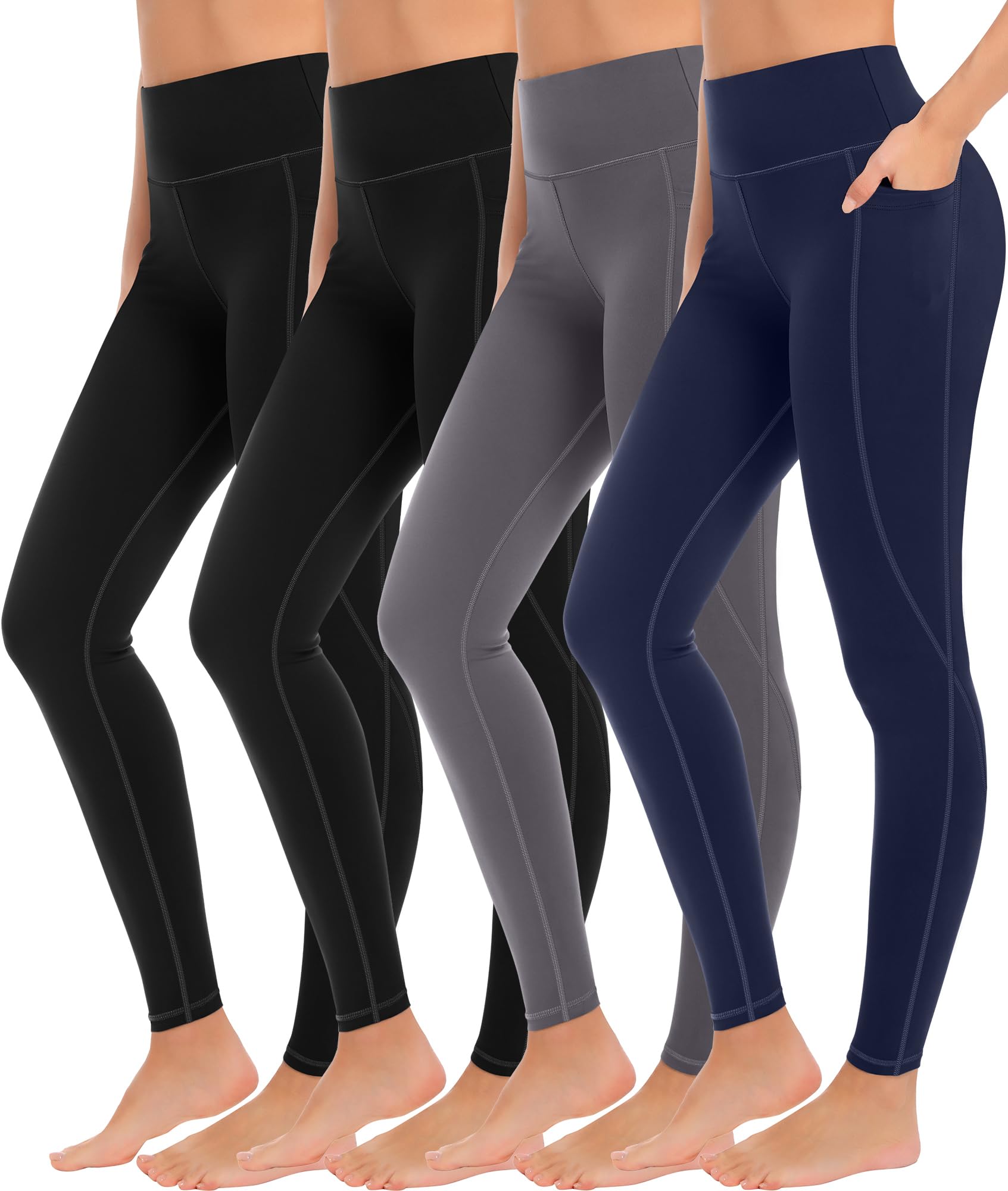 MIRITY 4 Pack Yoga Leggings with Pockets for Women - High Waist Tummy Control Pants for Workout