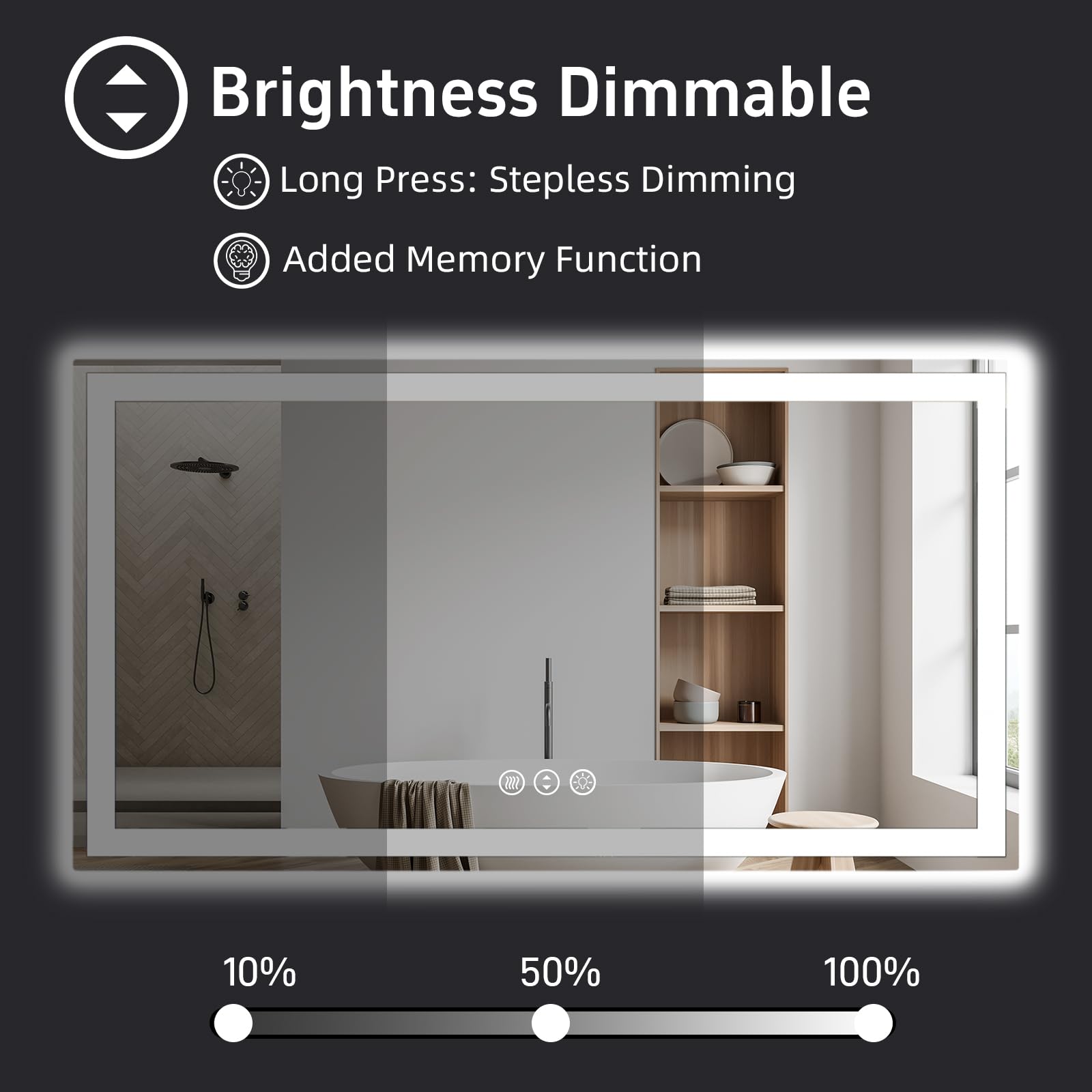 miskerm 55"x 30" LED Bathroom Mirror with Lights, Double Lighting Sources Dimmable, Anti-Fog Vanity Mirror with Lights, Lighted Bathroom Vanity Mirror for Wall Tempered Glass (Horizontal/Vertical)