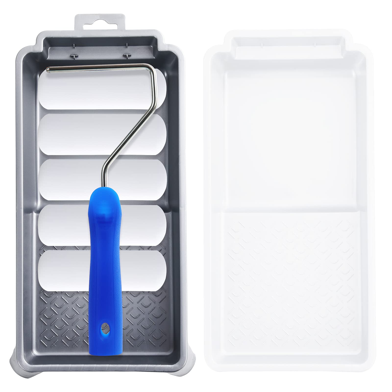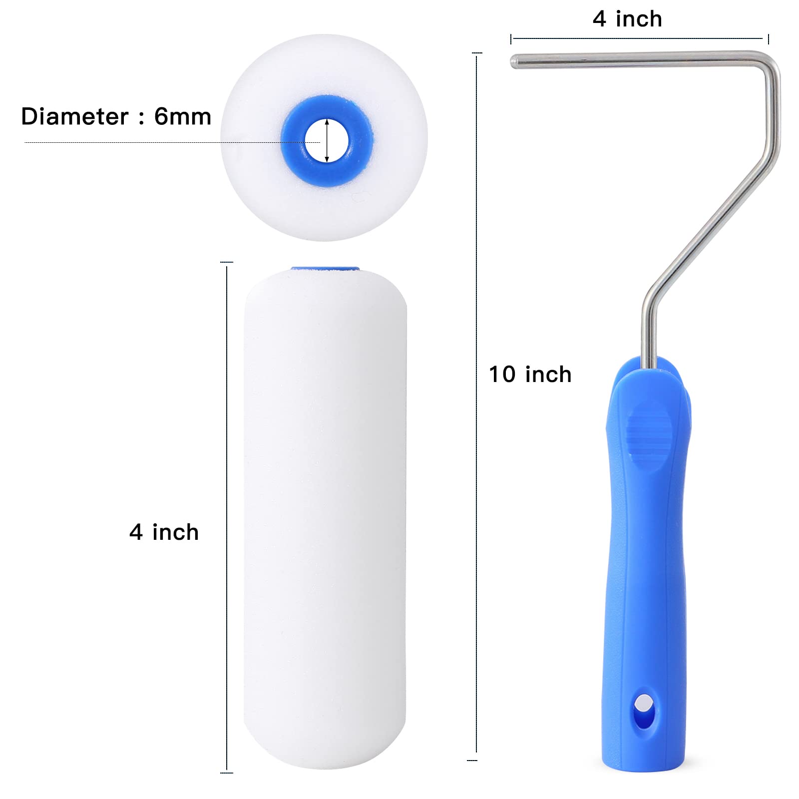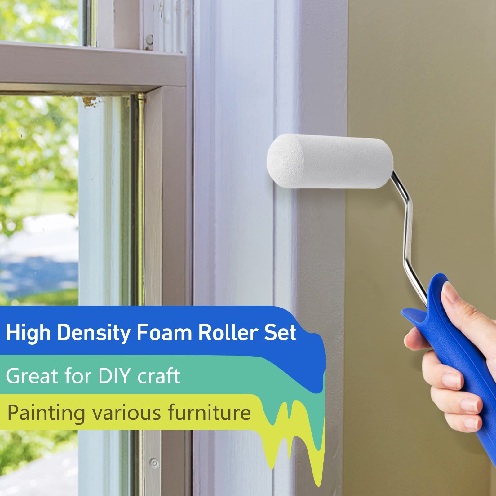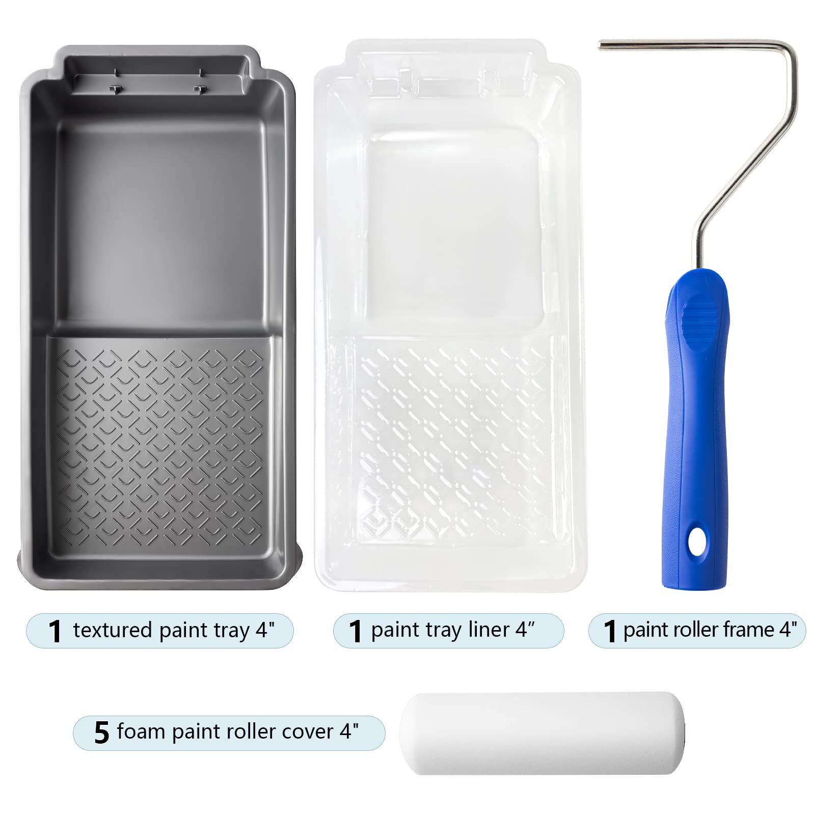 Mister Rui Foam Paint Roller, 8 Pack 4 Inch Paint Roller Kit, Complete 4" Mini Paint Roller Kit with Small Foam Paint Roller Covers, Frame, Tray and Liner for Professional Painting Results
