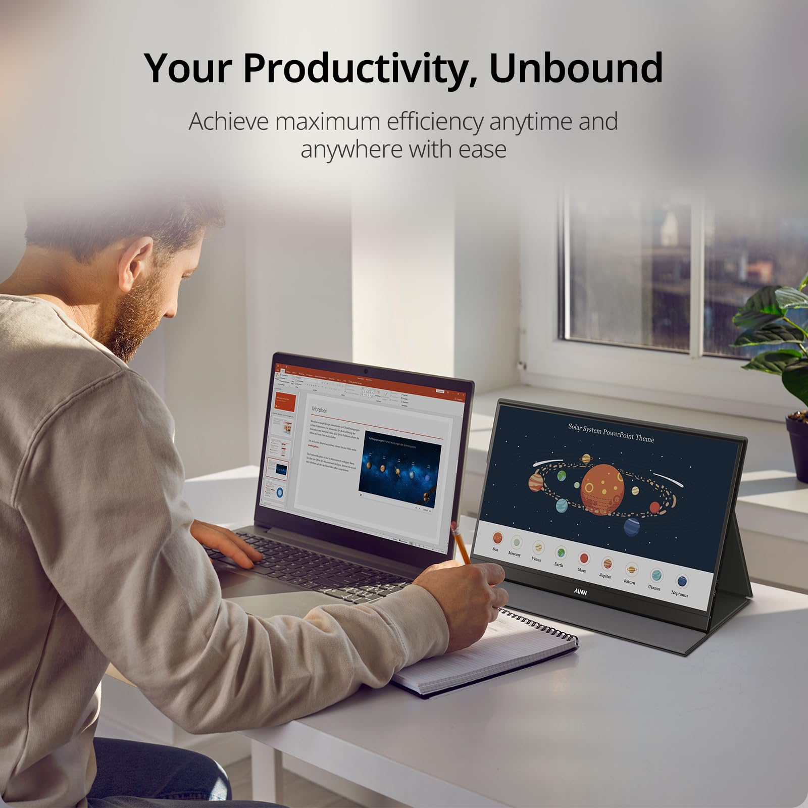 MNN Portable Monitor 15.6inch FHD 1080P USB C HDMI Gaming Ultra-Slim IPS Display w/Smart Cover & Speakers,HDR Plug&Play, External Monitor for Laptop PC Phone Mac (15.6'' 1080P)