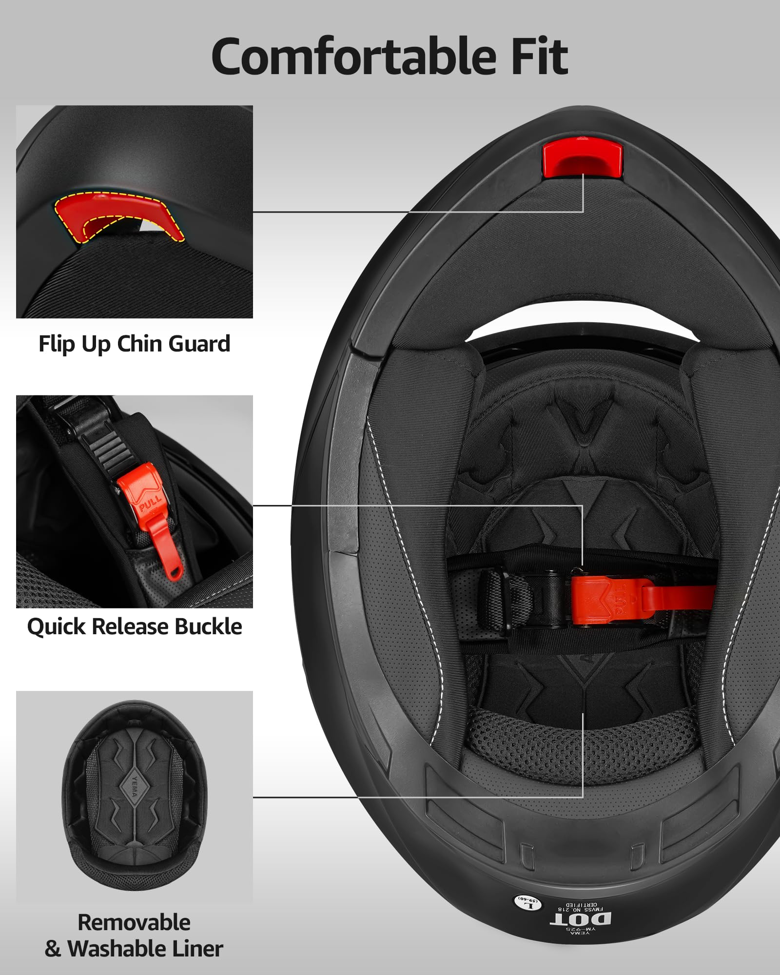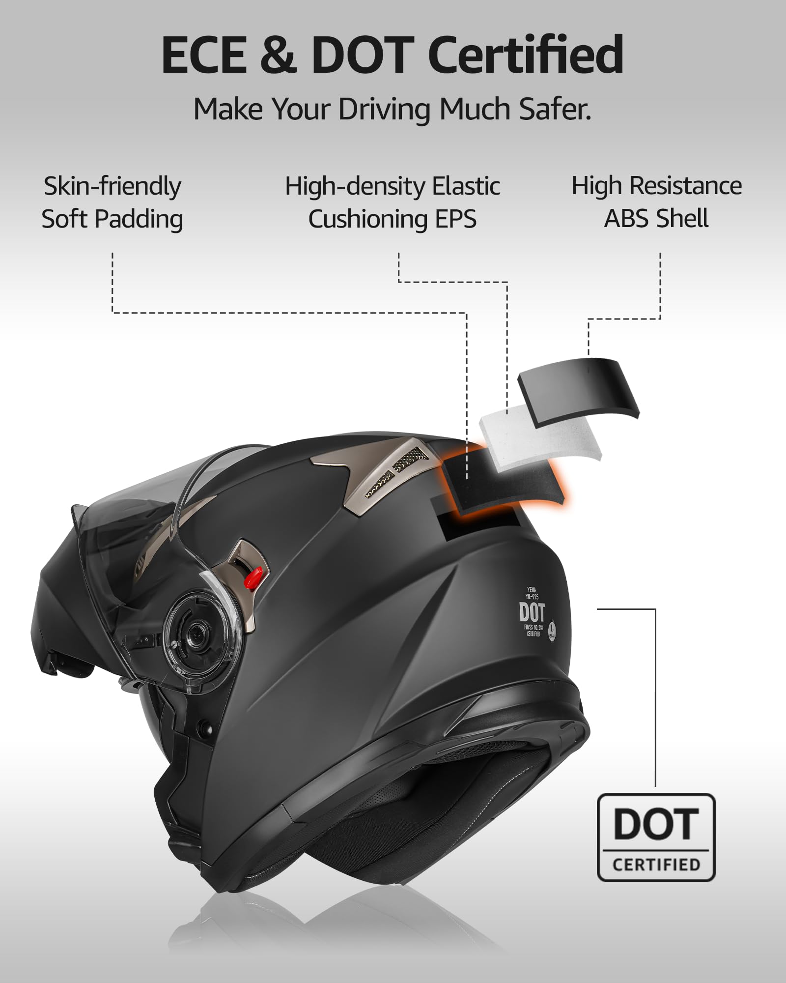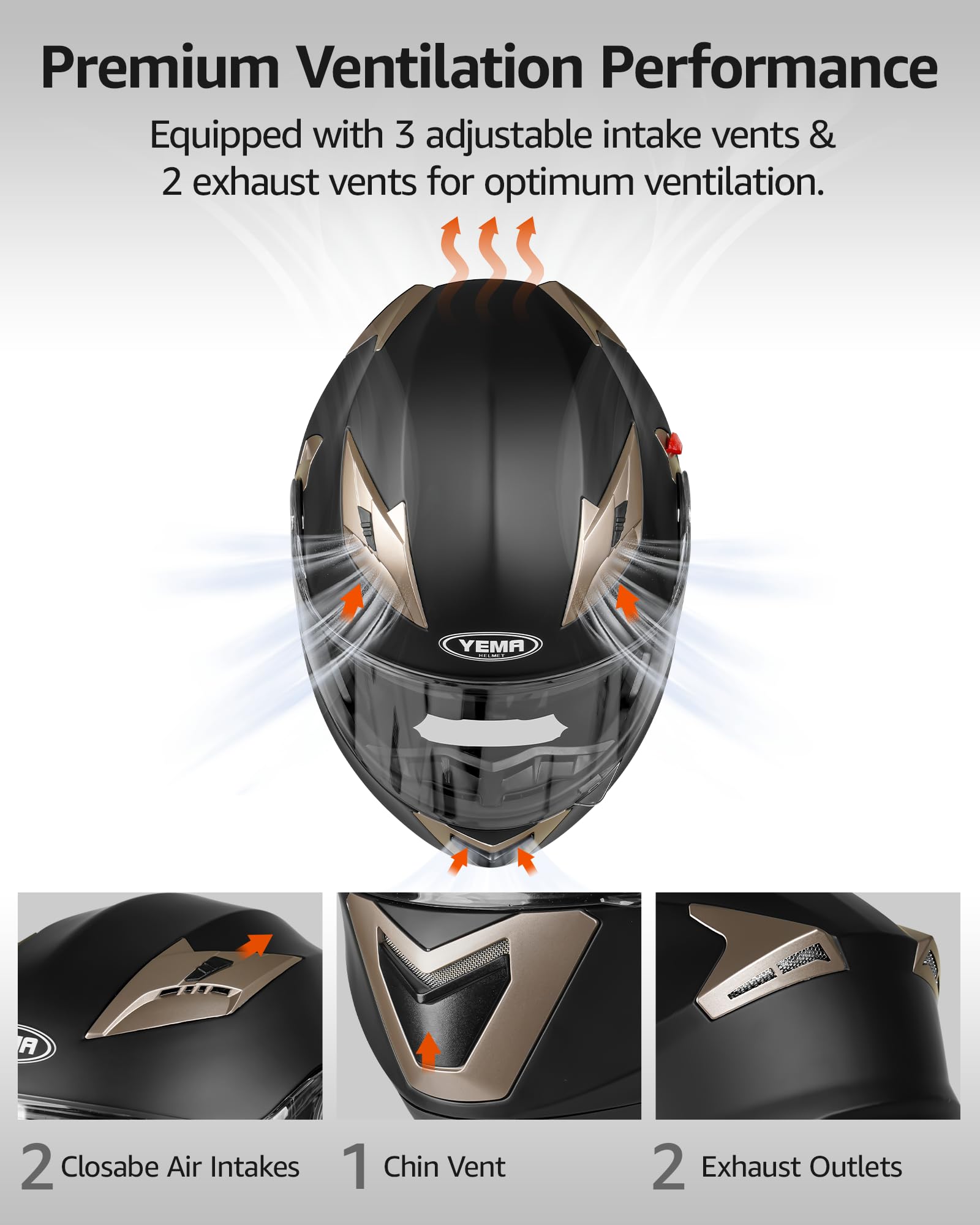 Motorcycle Modular Full Face Helmet DOT Approved - YEMA Helmet YM-925 Motorbike Casco Moto Moped Street Bike Racing Helmet with Sun Visor for Adult Youth Men and Women - Matte Black,S