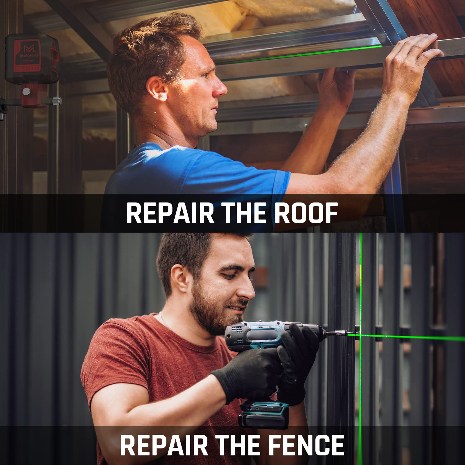 Motovera Laser Level, 100 feet Self Leveling Laser Level, Green Cross Line Rotary Lasers, 4 Brightness Adjustment, Manual Self leveling and Pulse Mode, IP54 Waterproof Battery Carrying Bag Included