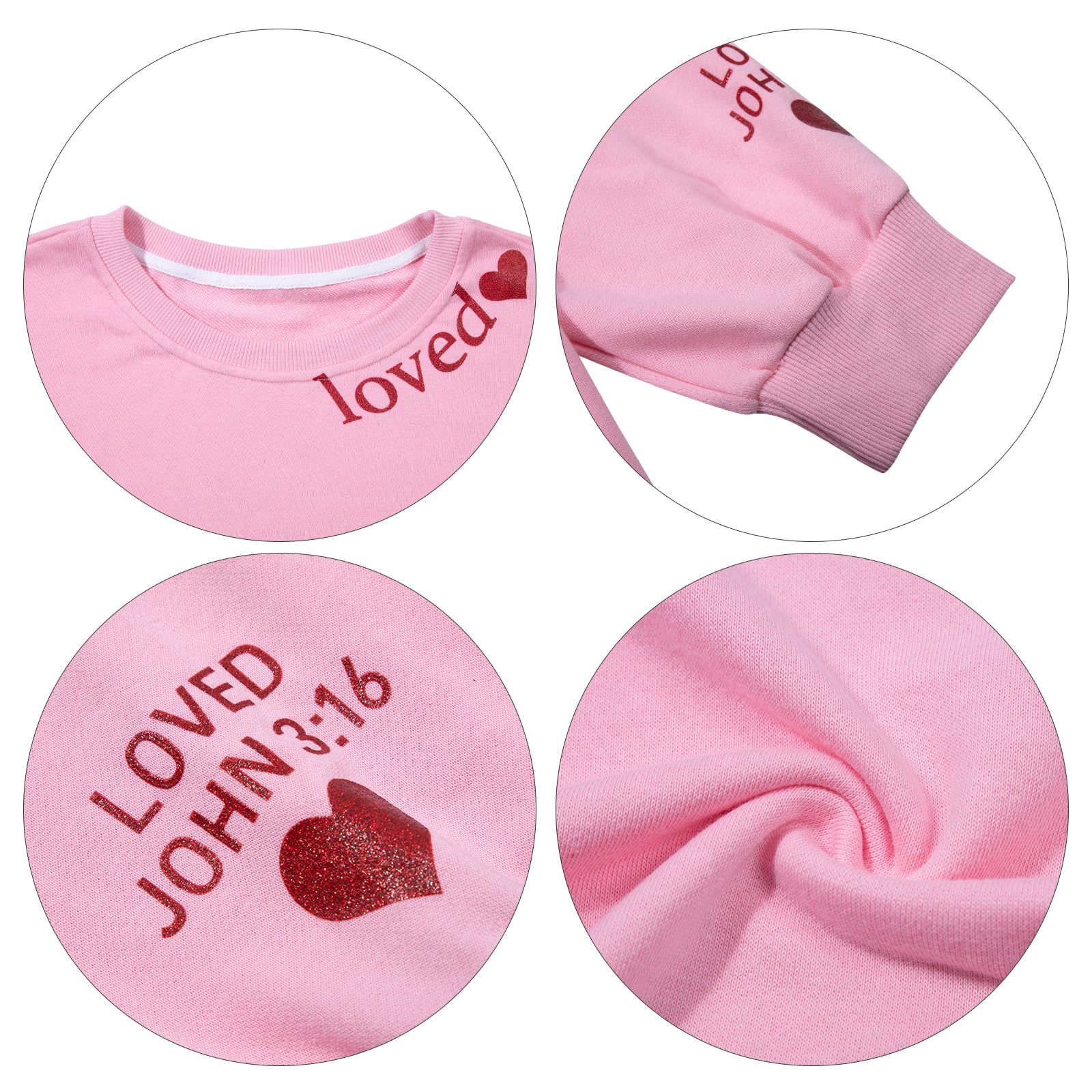 MOUSYA Valentines Day Sweatshirt Women Love Heart Graphic Shirts Christian Pullover Long Sleeve Tops Pink
