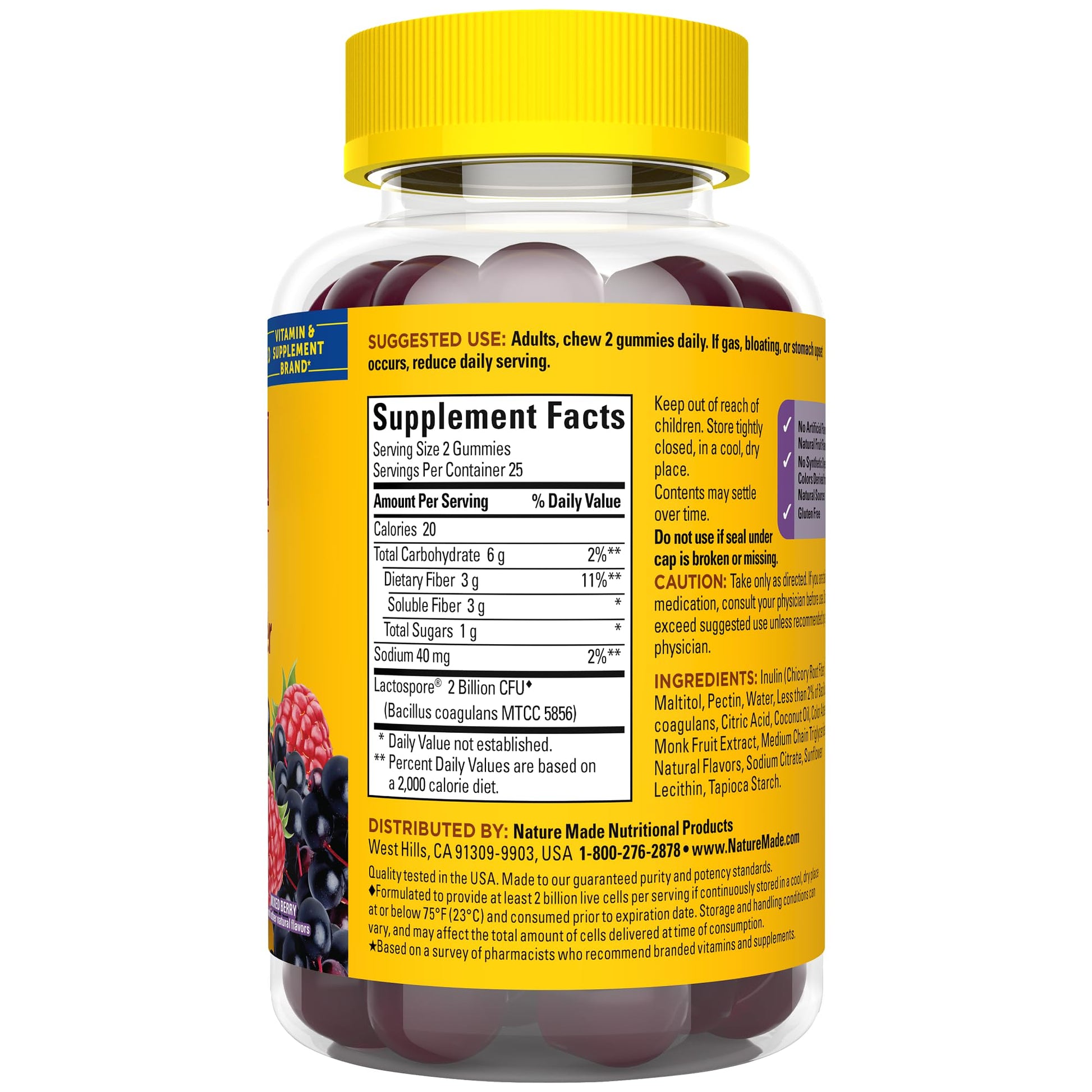 Nature Made Probiotic + Prebiotic Fiber Gummies, Gut Health, Fiber Supplement and Probiotics for Digestive Health, 50 Gummies, 25 Day Supply