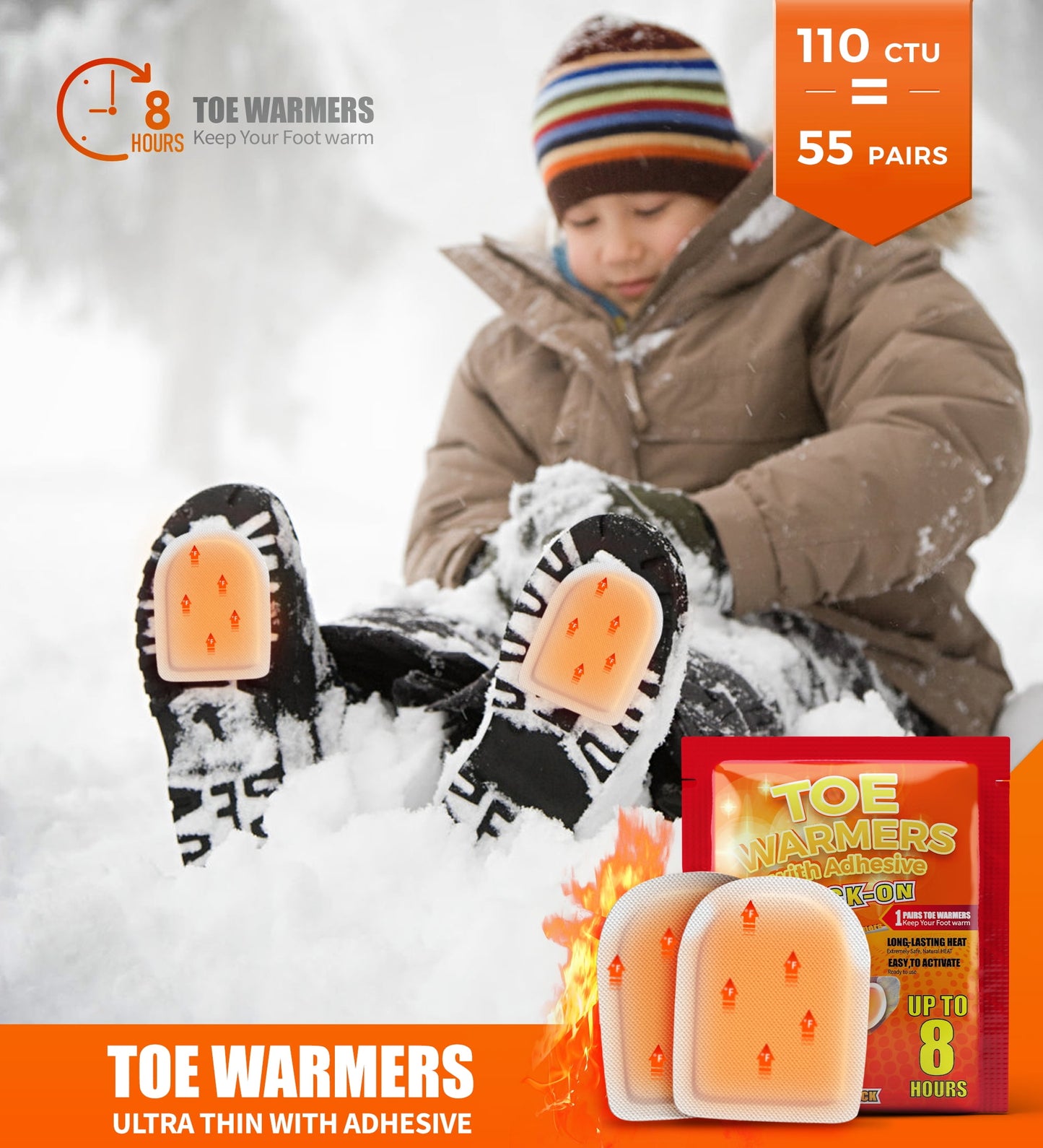 NFTIGB 55 Pack Foot Toe Warmers with Adhesive Backing, Air Activated Disposable Hand Warmer 8H Heat
