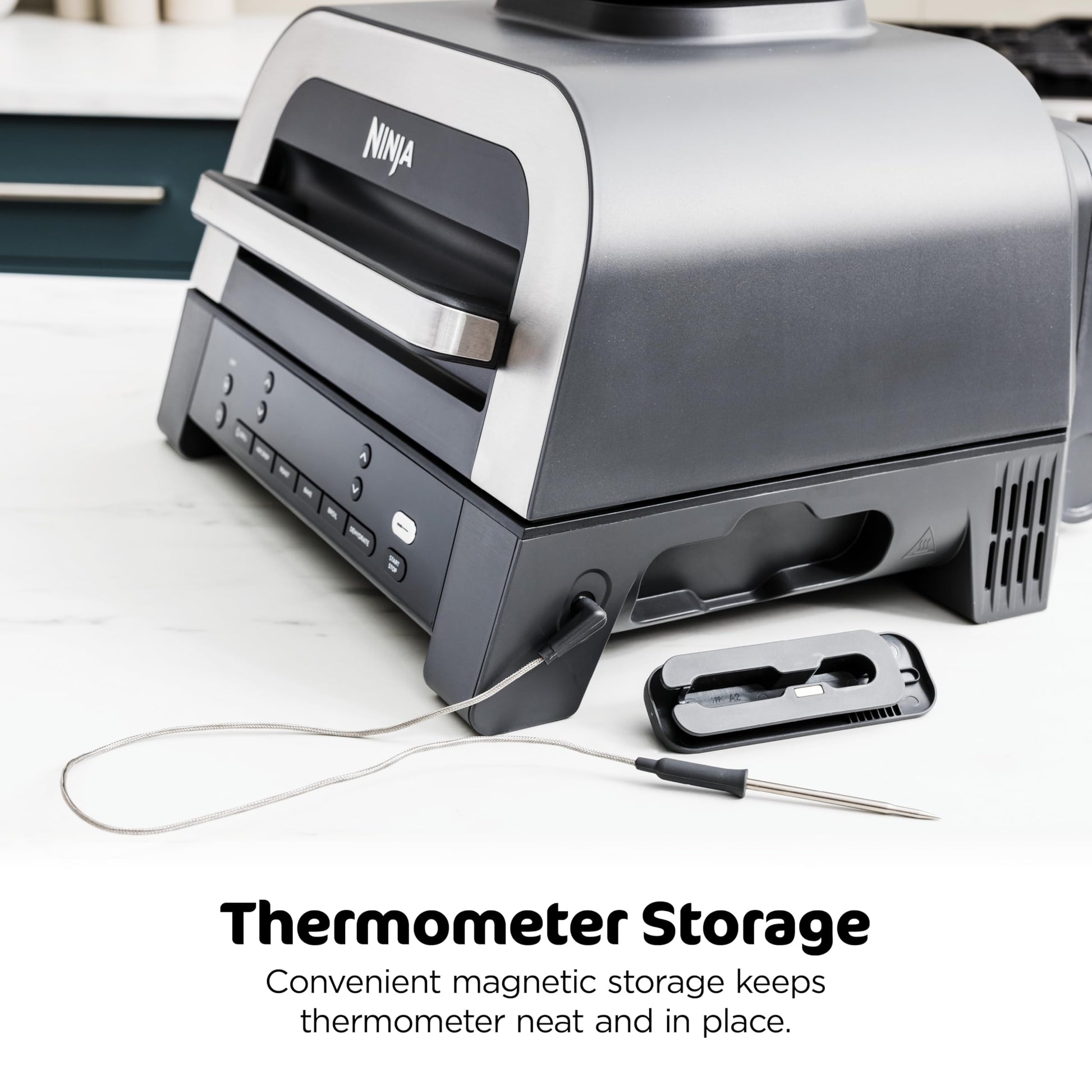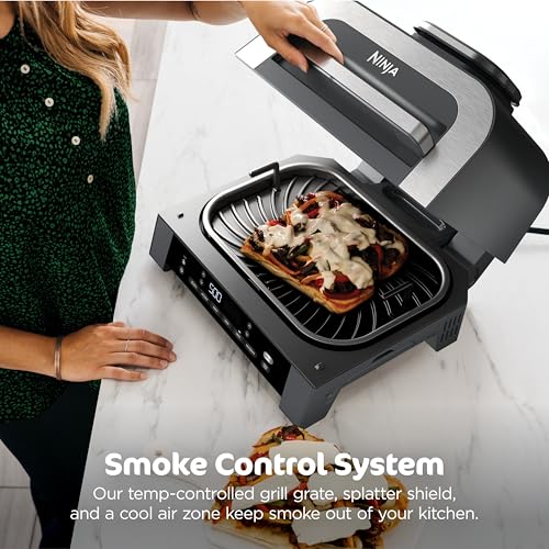 Ninja DG551 Foodi Smart XL 6-in-1 Indoor Grill with Air Fry, Roast, Bake, Broil, & Dehydrate, Foodi Smart Thermometer, 2nd Generation, Black/Silver