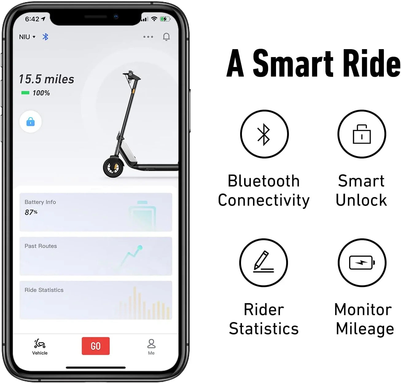 NIU KQi1 Pro Electric kick scooter Foldable Fast 15MPH / 15.5mi distance Charging Battery Commuting - Black