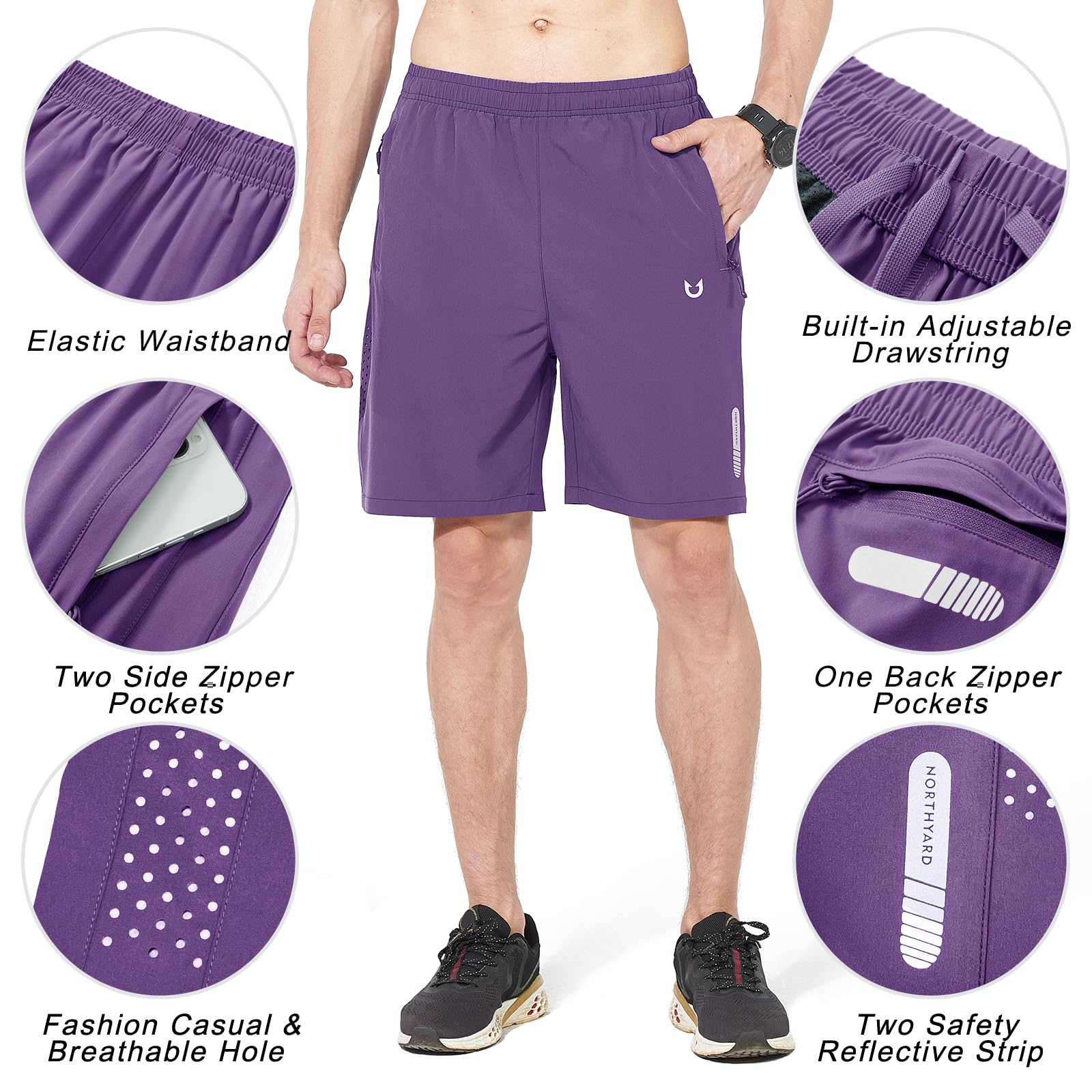 NORTHYARD Men's Athletic Running Shorts Quick Dry Workout Shorts 7"/ 5"/ 9" Lightweight Sports Gym Basketball Tennis Hiking Exercise Purple 2XL