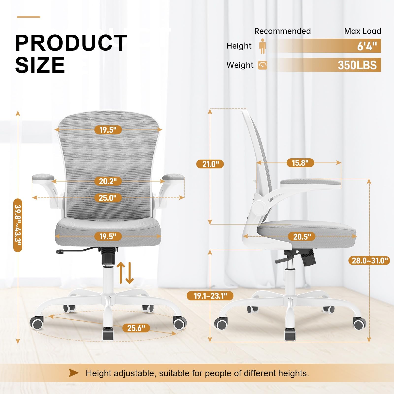 Office Chair, Ergonomic Desk Chairs 330LBS Capacity High Back Mesh Computer Chair with Flip-up Armrests, Comfy Work Chair with Adjustable Lumbar Support