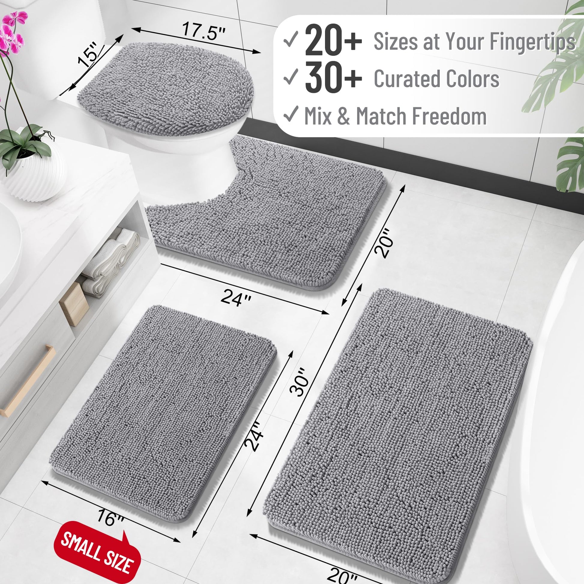 OLANLY Bathroom Rugs 30x20, Extra Soft Absorbent Chenille Bath Rugs, Rubber Backing Quick Dry, Machine Washable Bath Mats for Bathroom Floor, Tub and Shower, Home Decor Accessories, Grey