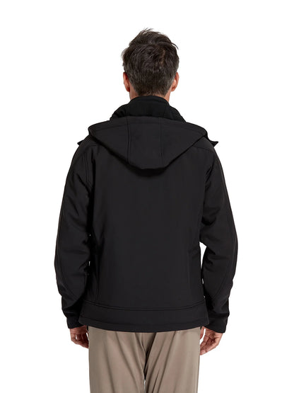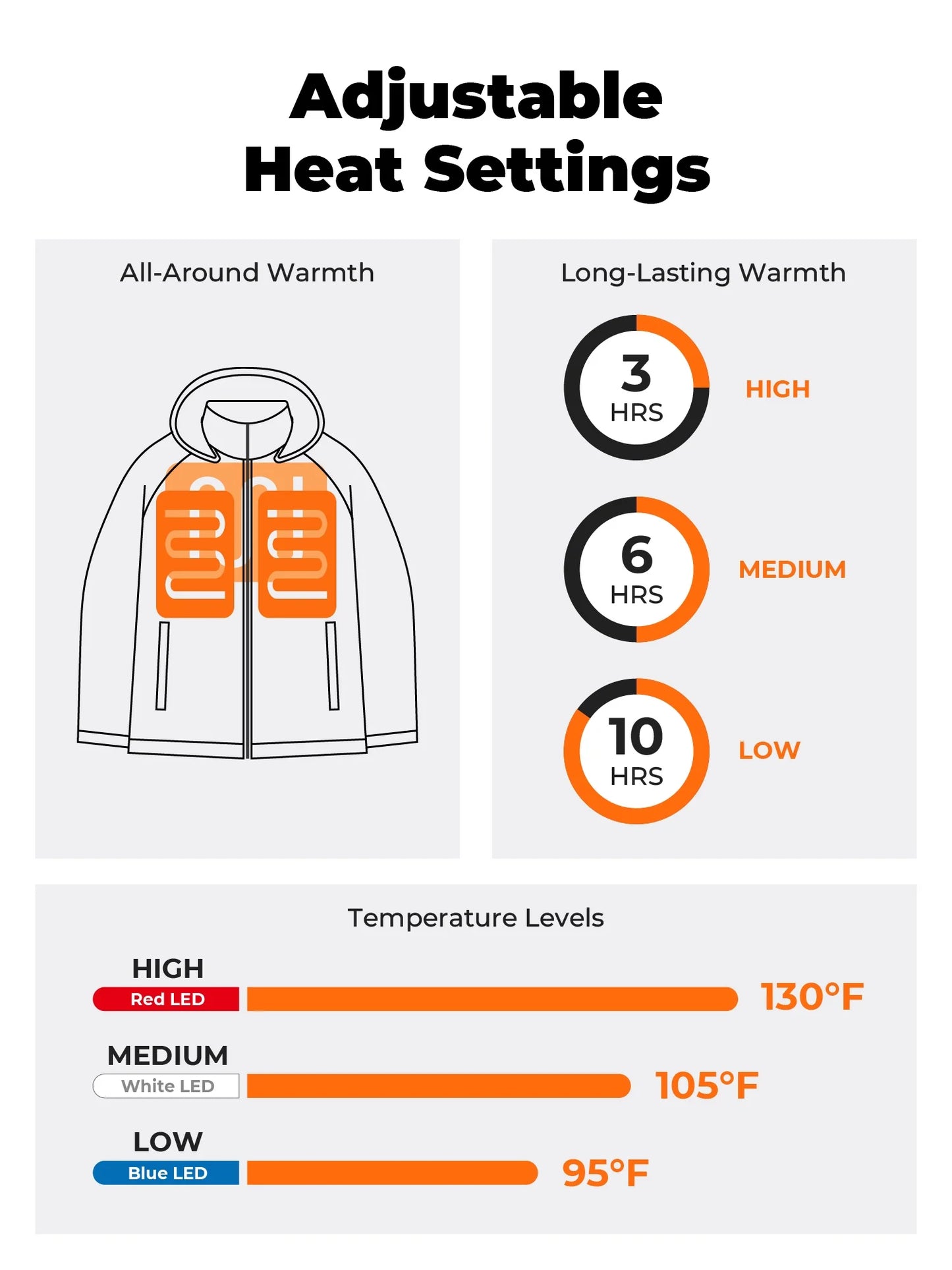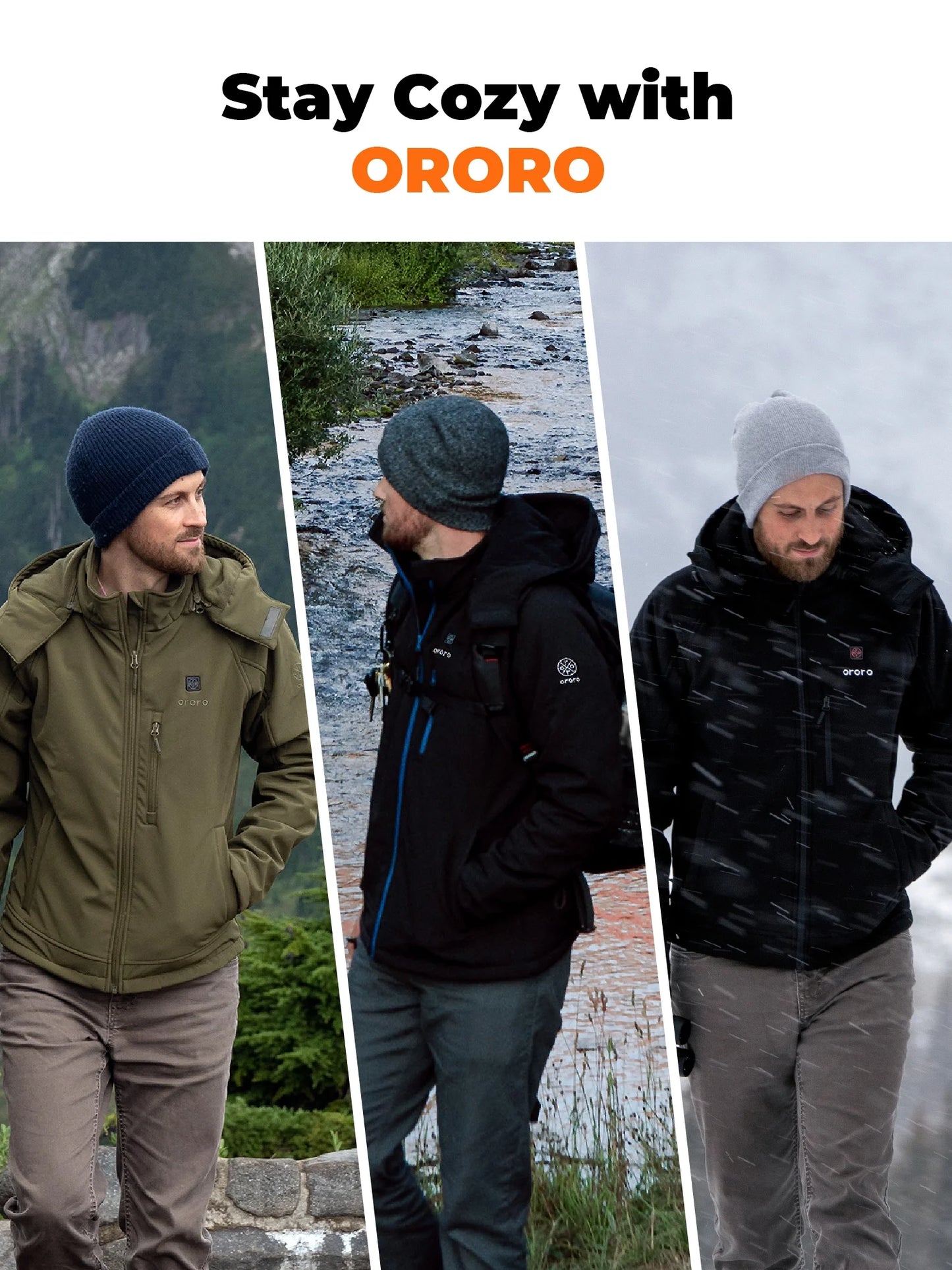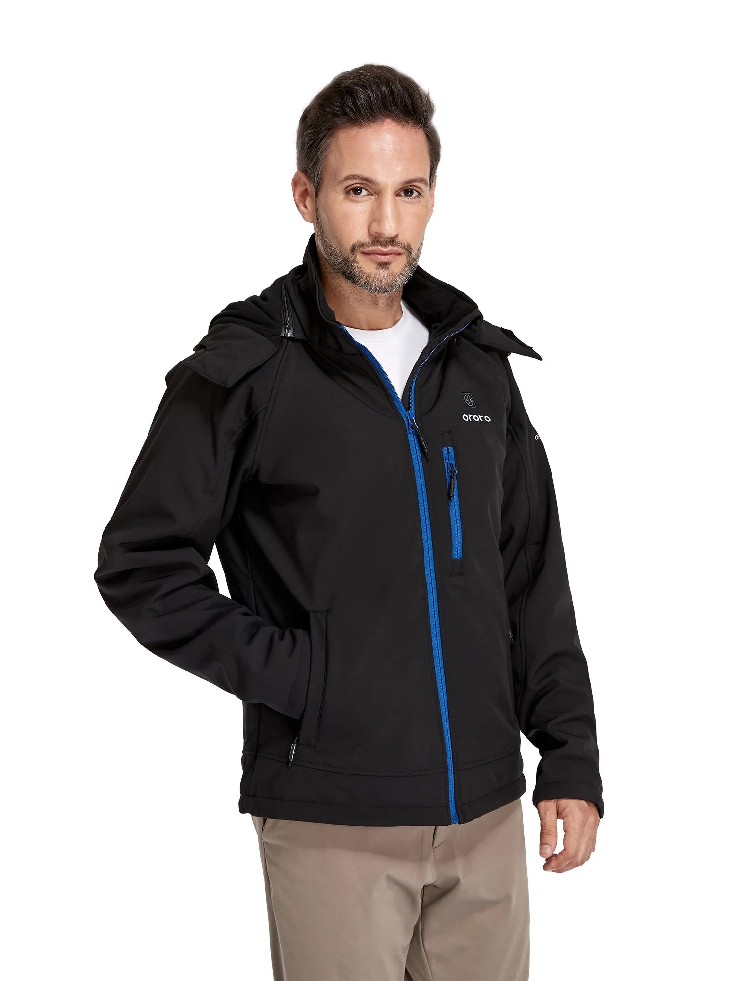ORORO Men's Heated Jacket with Battery and Detachable Hood, Battery Powered Heating Jacket for Hiking Skiing Camping (Black/Blue Zipper, L)