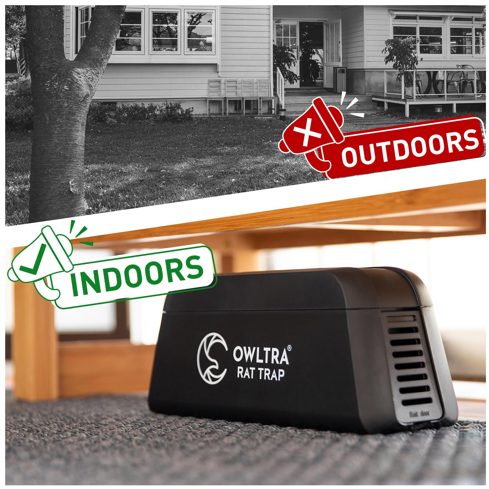 OWLTRA OW-1 Indoor Electric Rat Trap 2PCS, Instant Kill Rodent Zapper with Pet Safe Trigger, Black