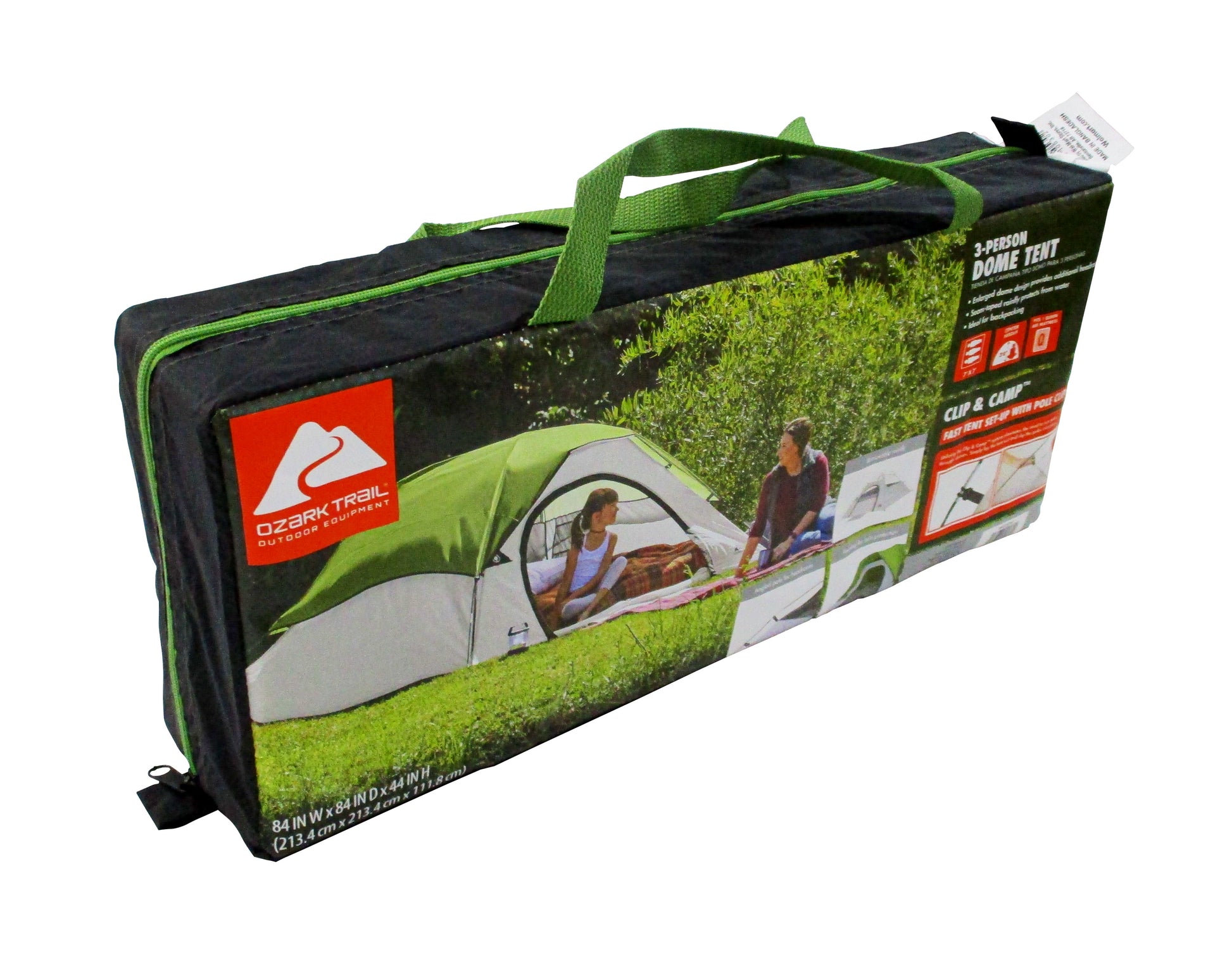 Ozark Trail, 3-Person Clip & Camp Dome Tent 7’ x 7’ x 44”, 5.64 lbs