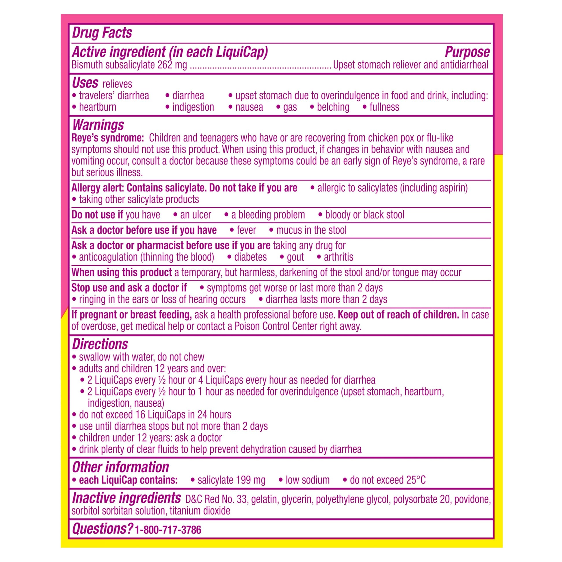 Pepto Bismol Liquicaps, Upset Stomach Relief, Bismuth Subsalicylate, Multi-Symptom Relief of Gas, Nausea, Heartburn, Indigestion, Upset Stomach, Diarrhea, 48 Liquicaps