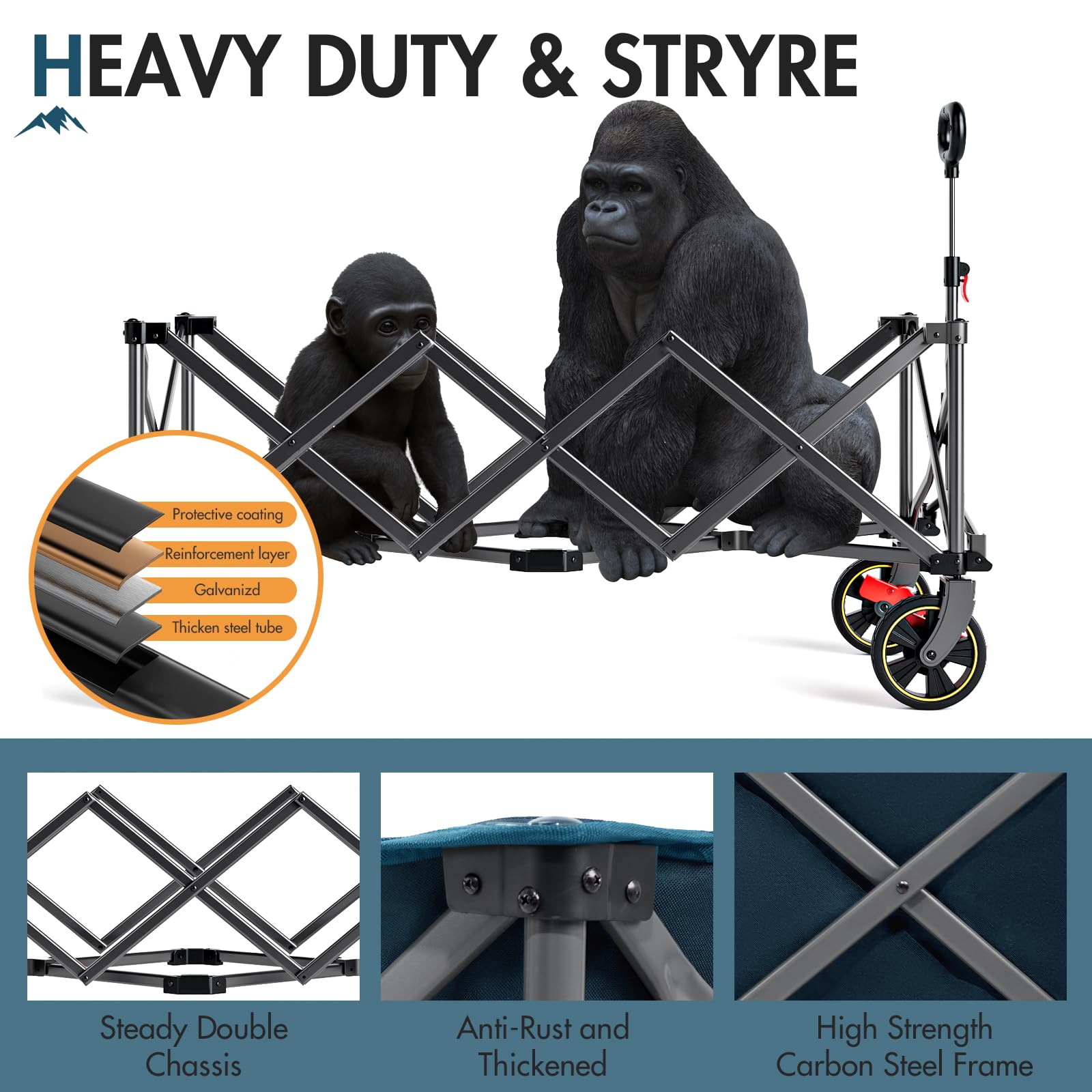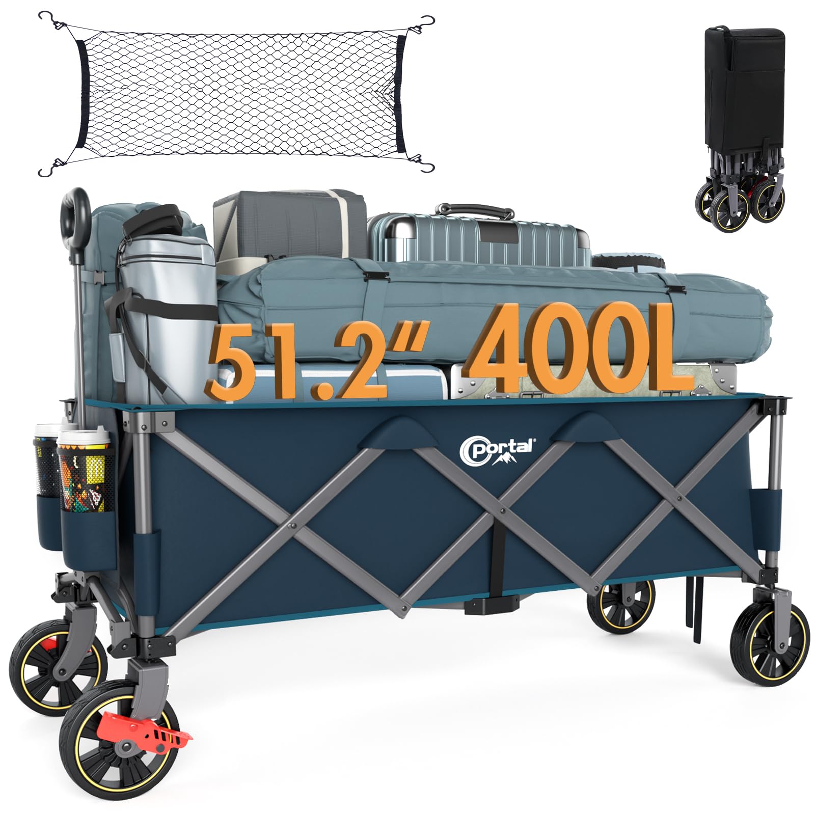 PORTAL 51.2" Long Wagons Carts Foldable, 400L Large Collapsible Wagon with Wheels, 350 LBs Folding Wagon for Sports, Camping, Grocery