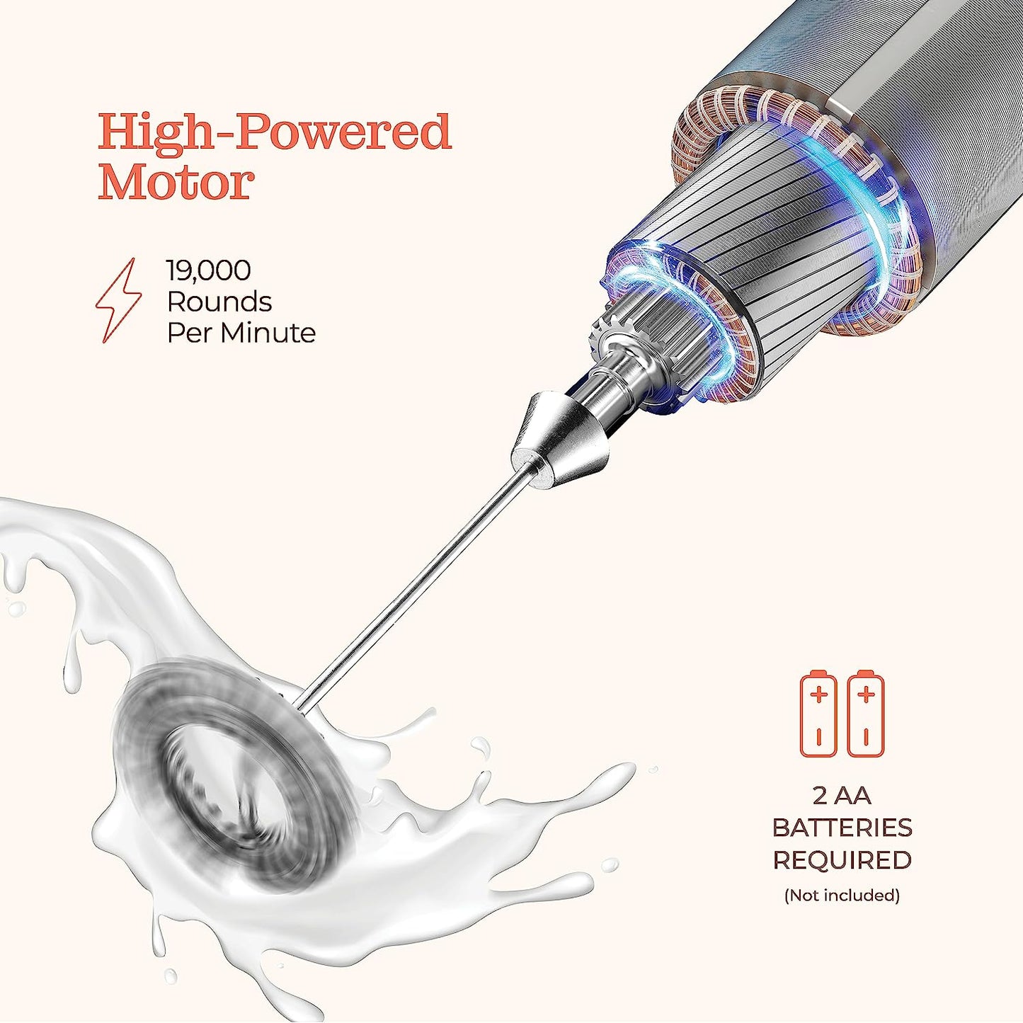 Powerful Handheld Milk Frother, Mini Milk Frother Wand, Battery Operated Stainless Steel Drink Mixer - Milk Frother Stand for Milk Coffee, Lattes, Cappuccino, Frappe, Matcha, Hot Chocolate. Great Gift