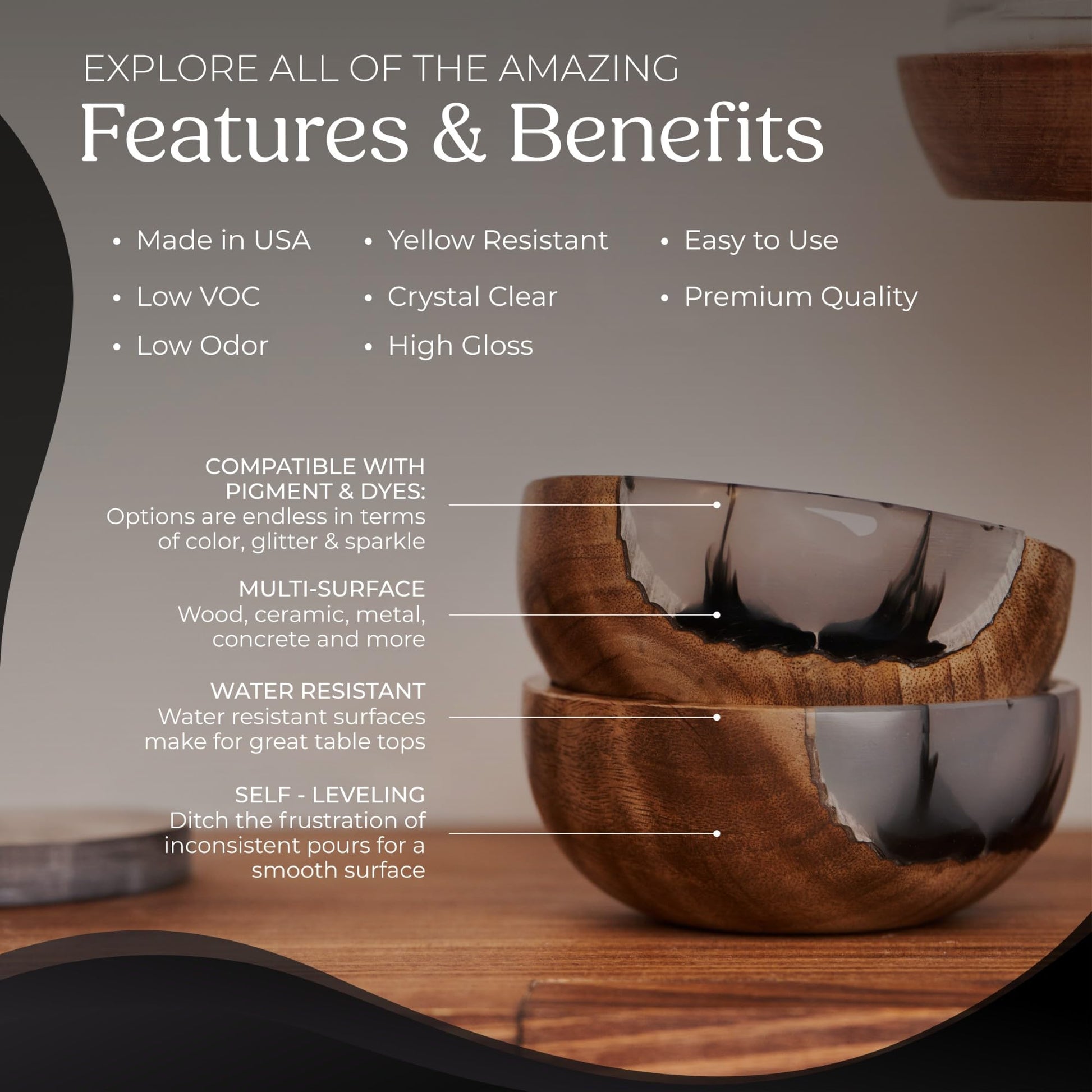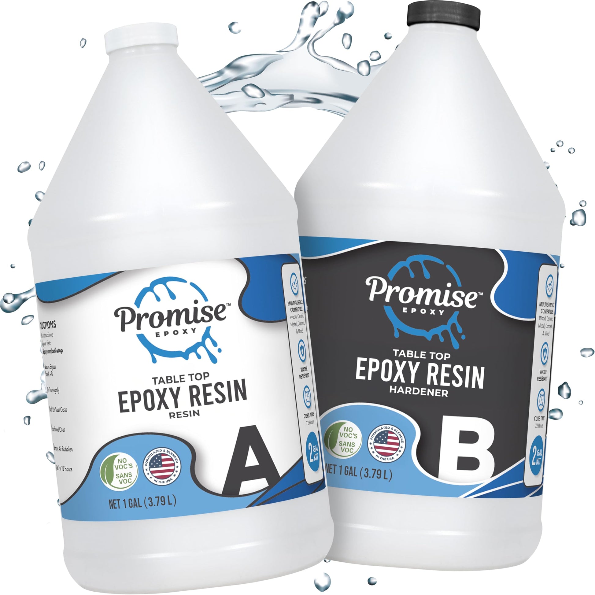 Promise Epoxy Resin Kit 2 Gallon - Crystal Clear, Self Leveling, Food Safe for Table Top, Arts, Wood Casting, Jewelry Making, Use with Mica Powder, Silicone Molds, & Alcohol Ink