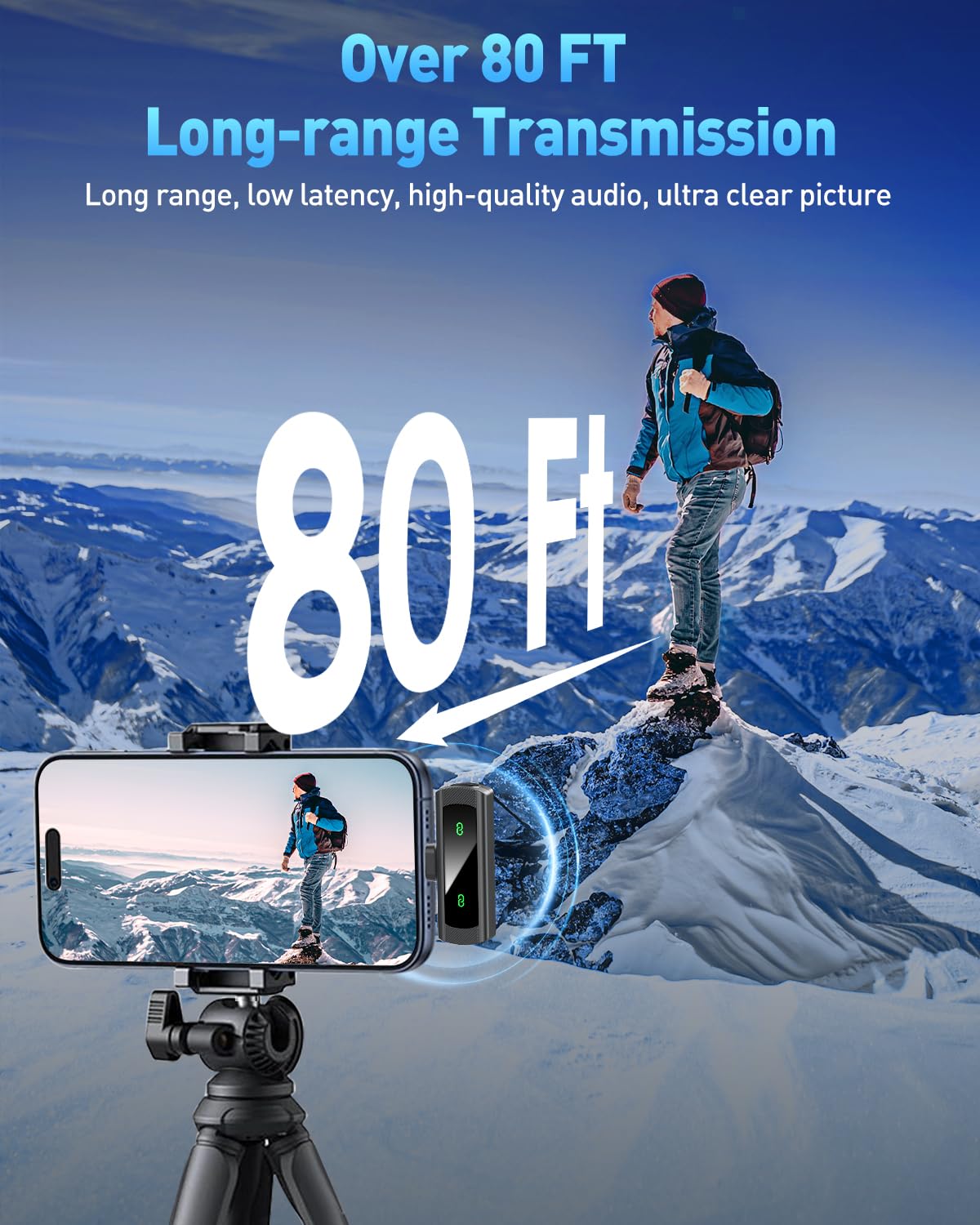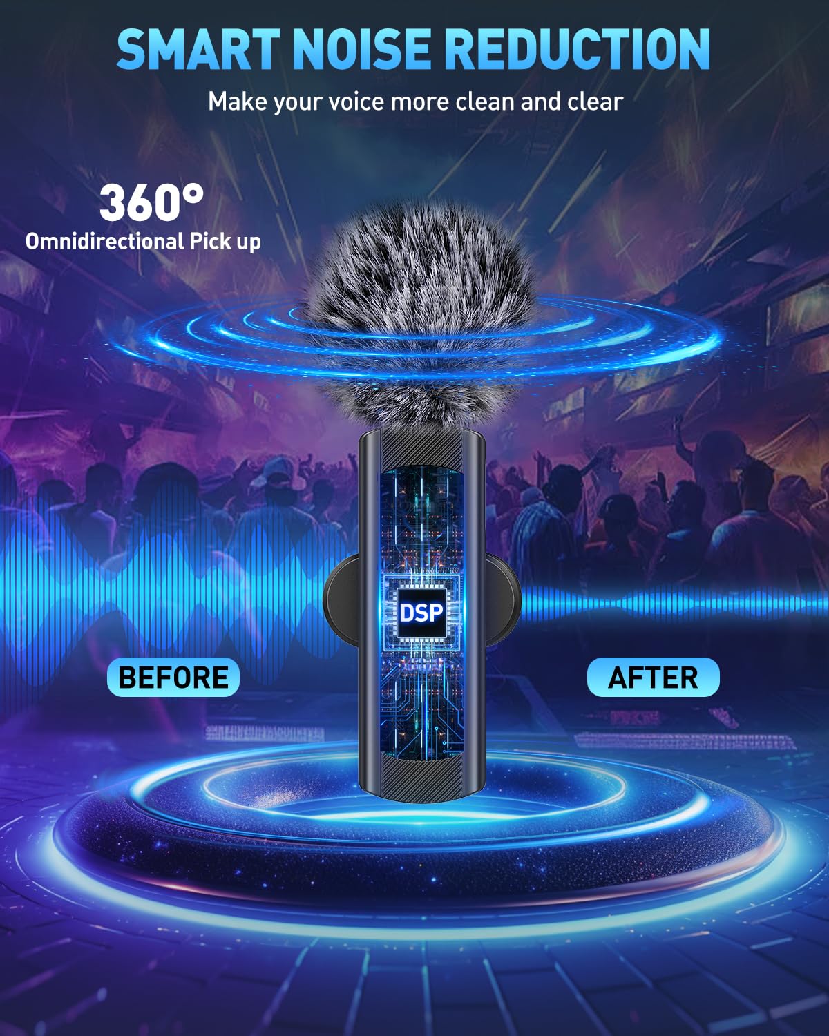 QUZAZBU USB C Wireless Lavalier Microphone for iPhone 15 16, Mini LED Display Microphone for Android with Noise Reduction, Lapel Magnetic Clip-on Mic for Recording Content Creator Vlog Tiktok YouTube