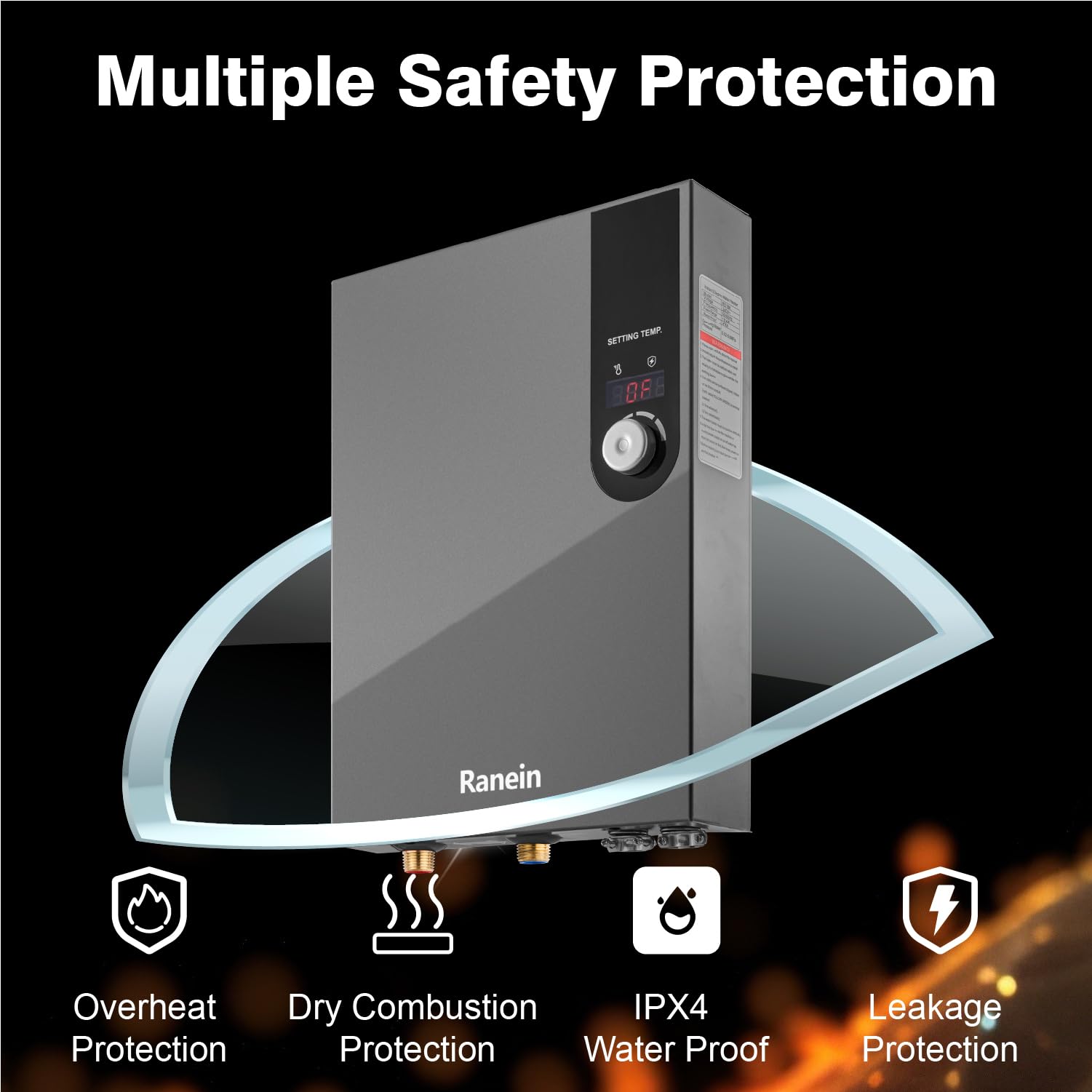 Ranein Electric Tankless Water Heater, 27kW 240V on Demand Instant Endless Water Heater with LED Temperature Display for Residential Whole House Shower, Space Saving