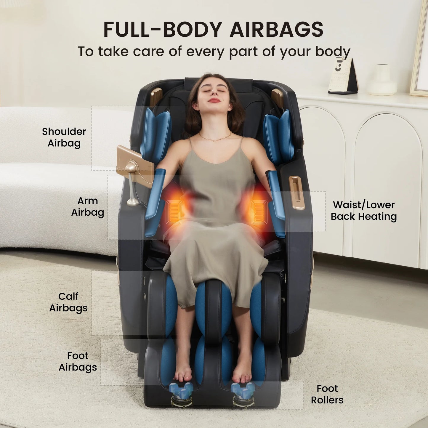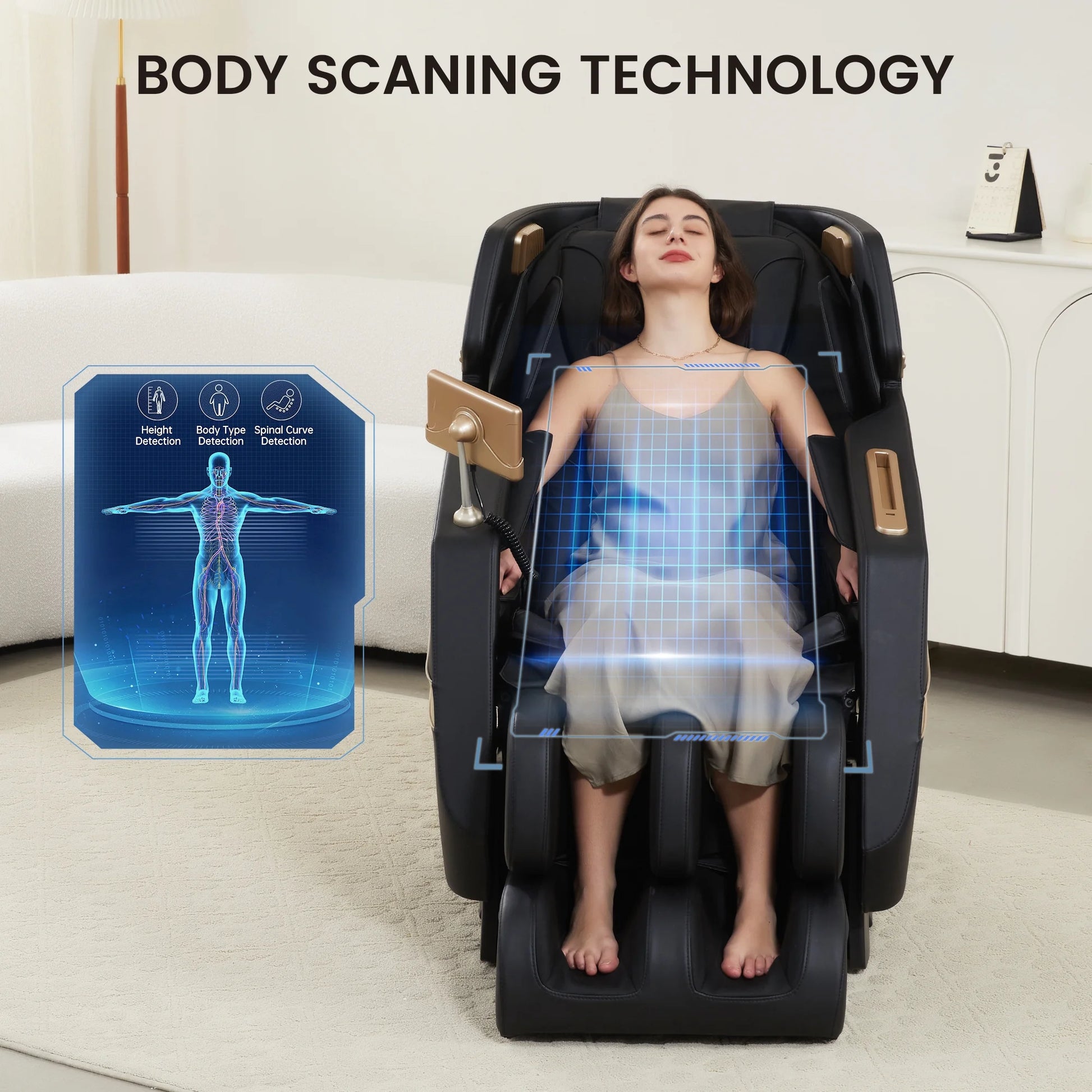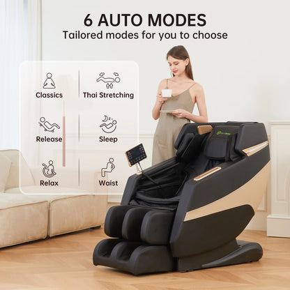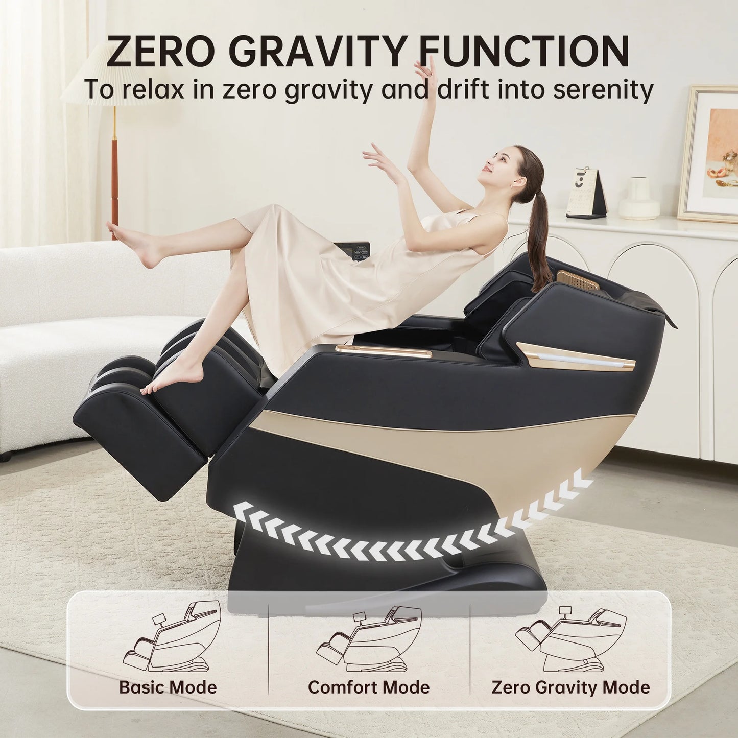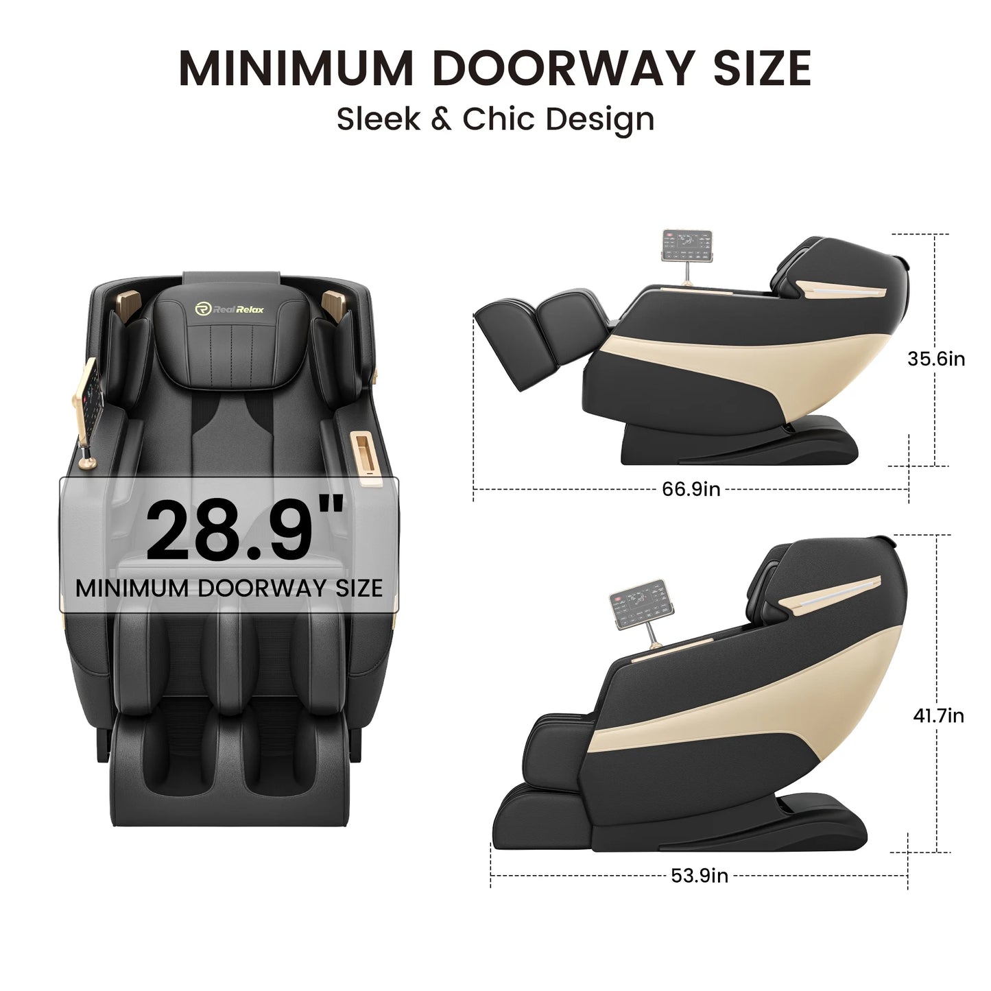 Real Relax 3D Massage Chair, Full Body Zero Gravity Recliner with SL Track, Yoga Stretching, Foot Rollers, Bluetooth, Heating, Black