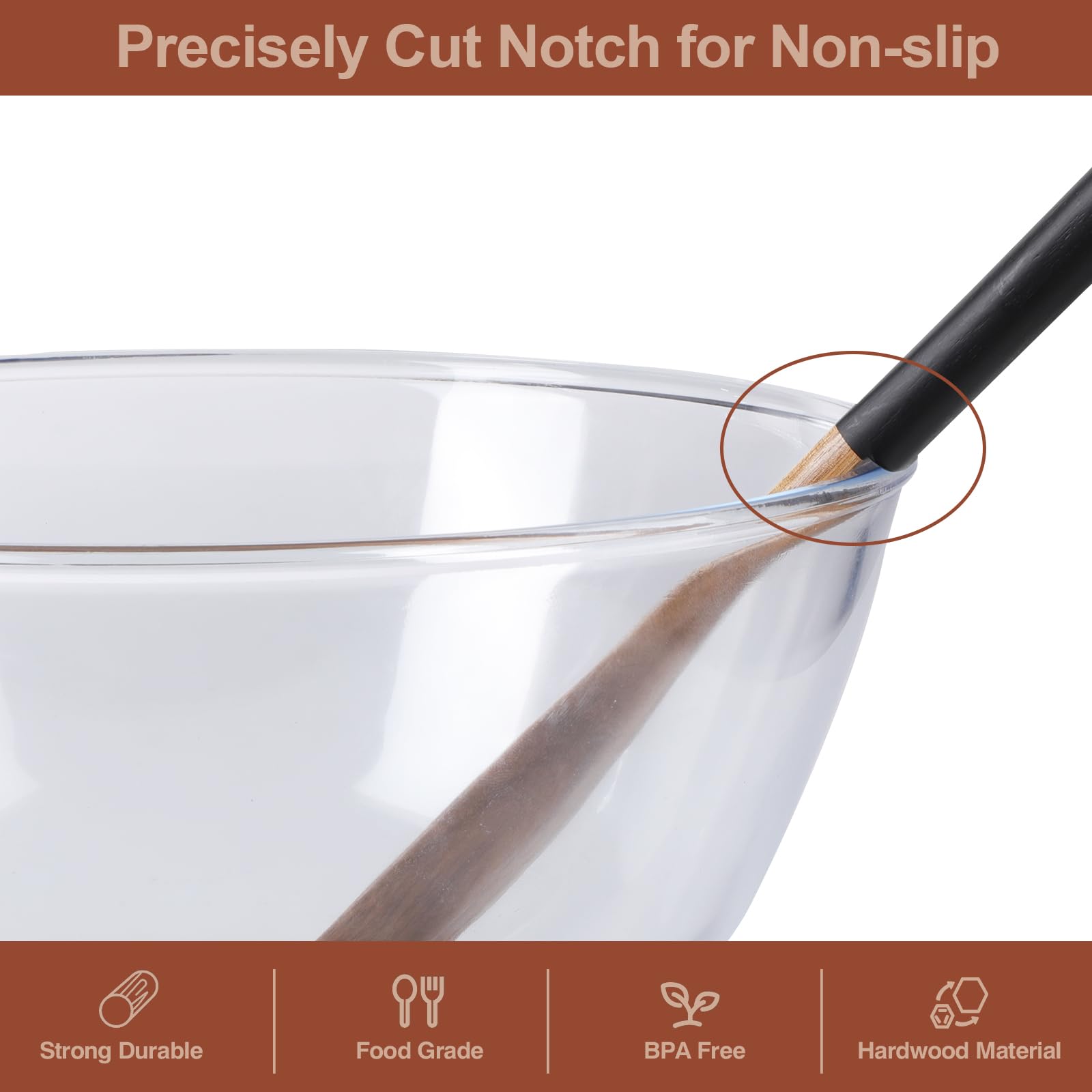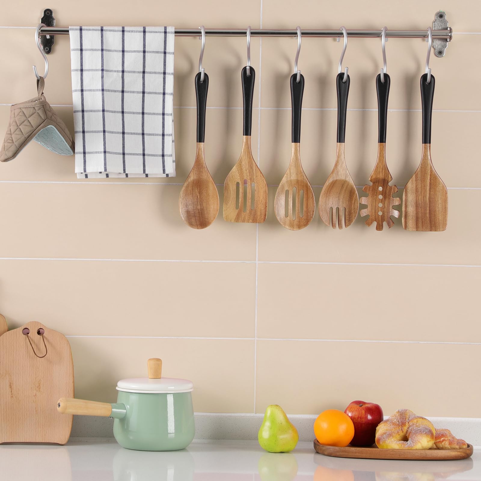 ROSOS Wooden Spoons For Cooking, 6 PCS Natural Acacia Wooden Cooking Utensils or Non-Stick Wooden Kitchen Utensil Set for Kitchen Essentials, Smooth Grip Wooden Spoons with Hanging Hole, Black