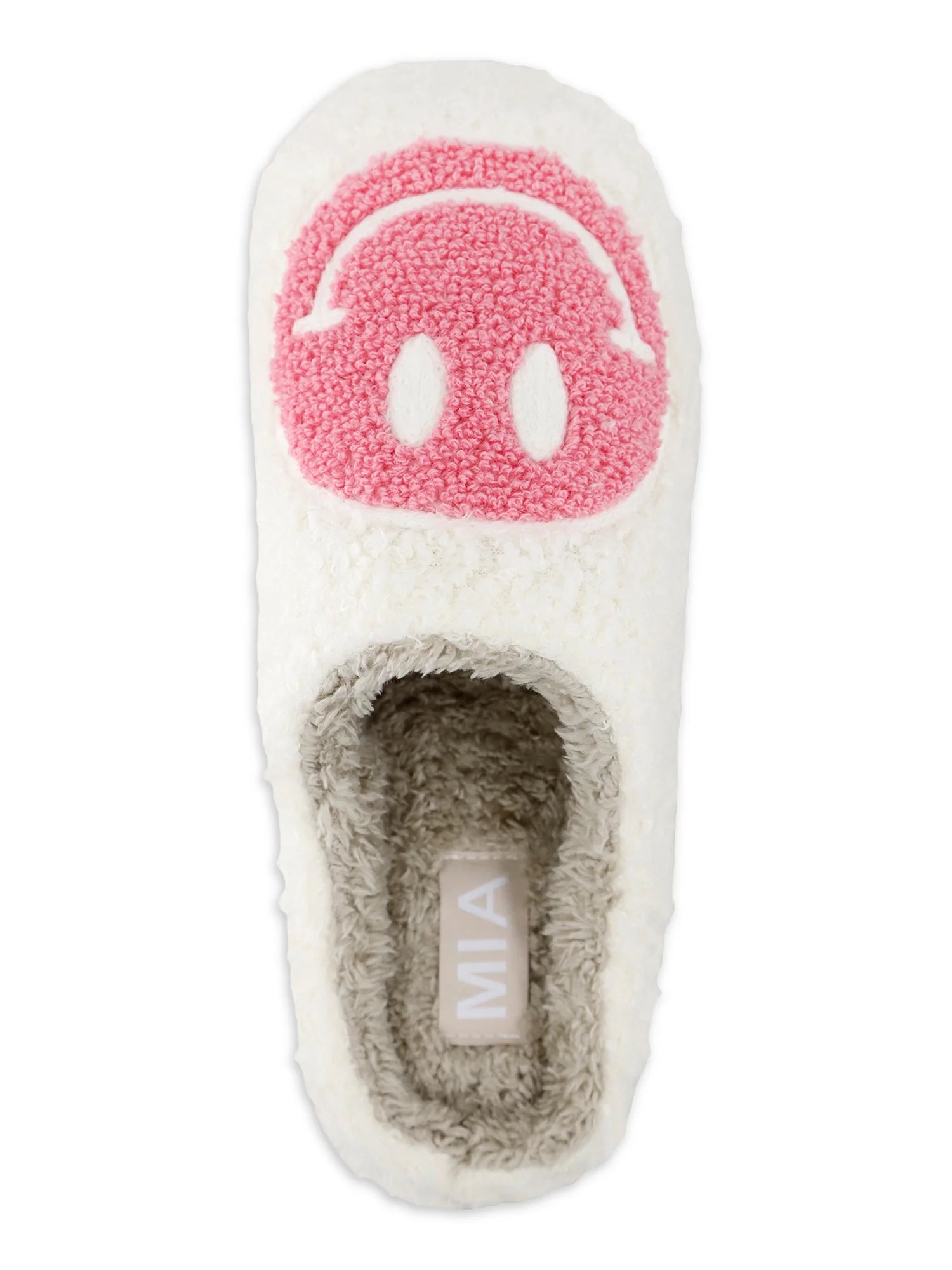 S+R Women's Smiley Graphic Cozy Slide Slipper