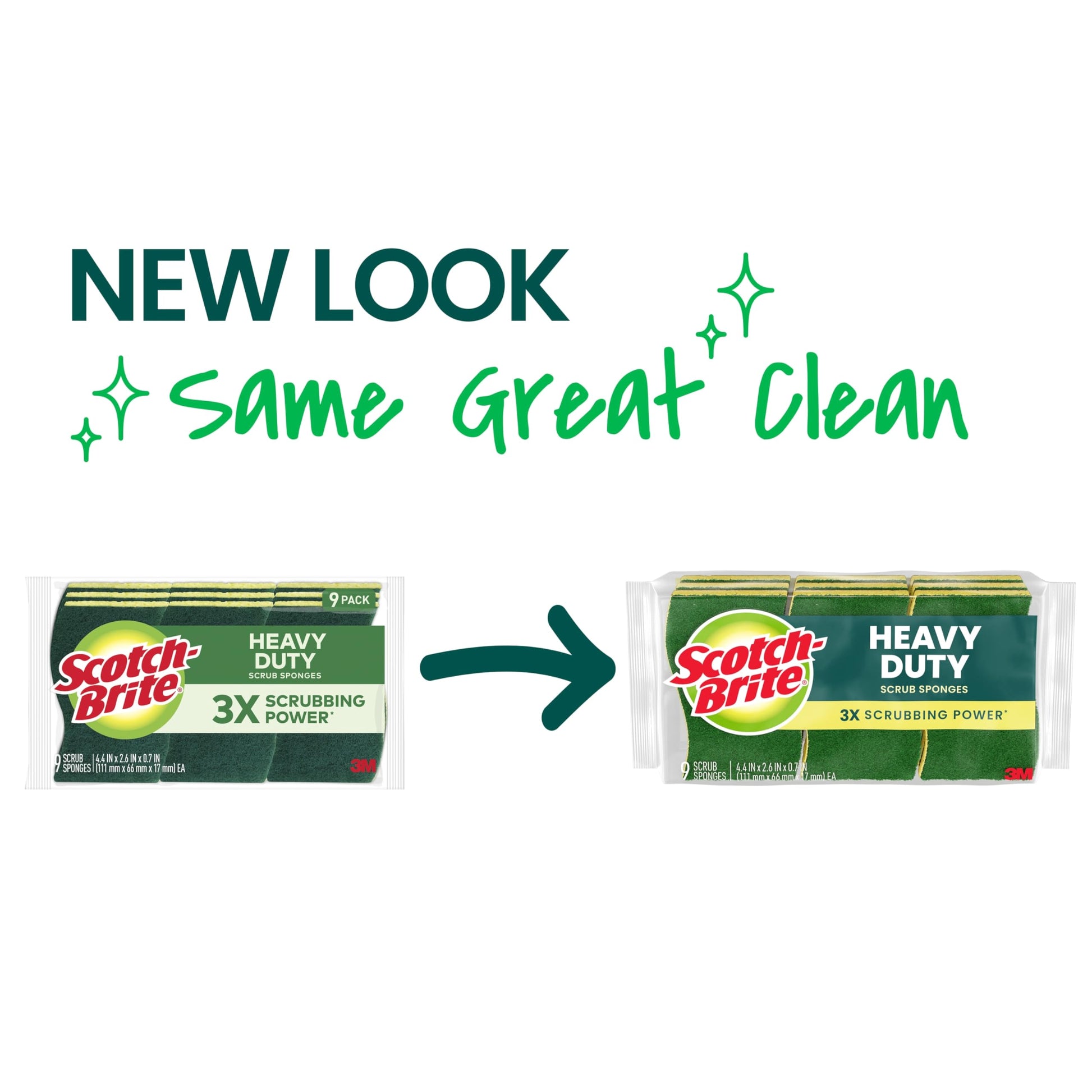 Scotch-Brite Heavy Duty Scrub Sponge, 9 Kitchen Sponges Designed for Tough Messes in the Kitchen that Last 3X Longer*, Best for Cast Iron Skillets and Outdoor Grills, Flexible, Durable, and Strong