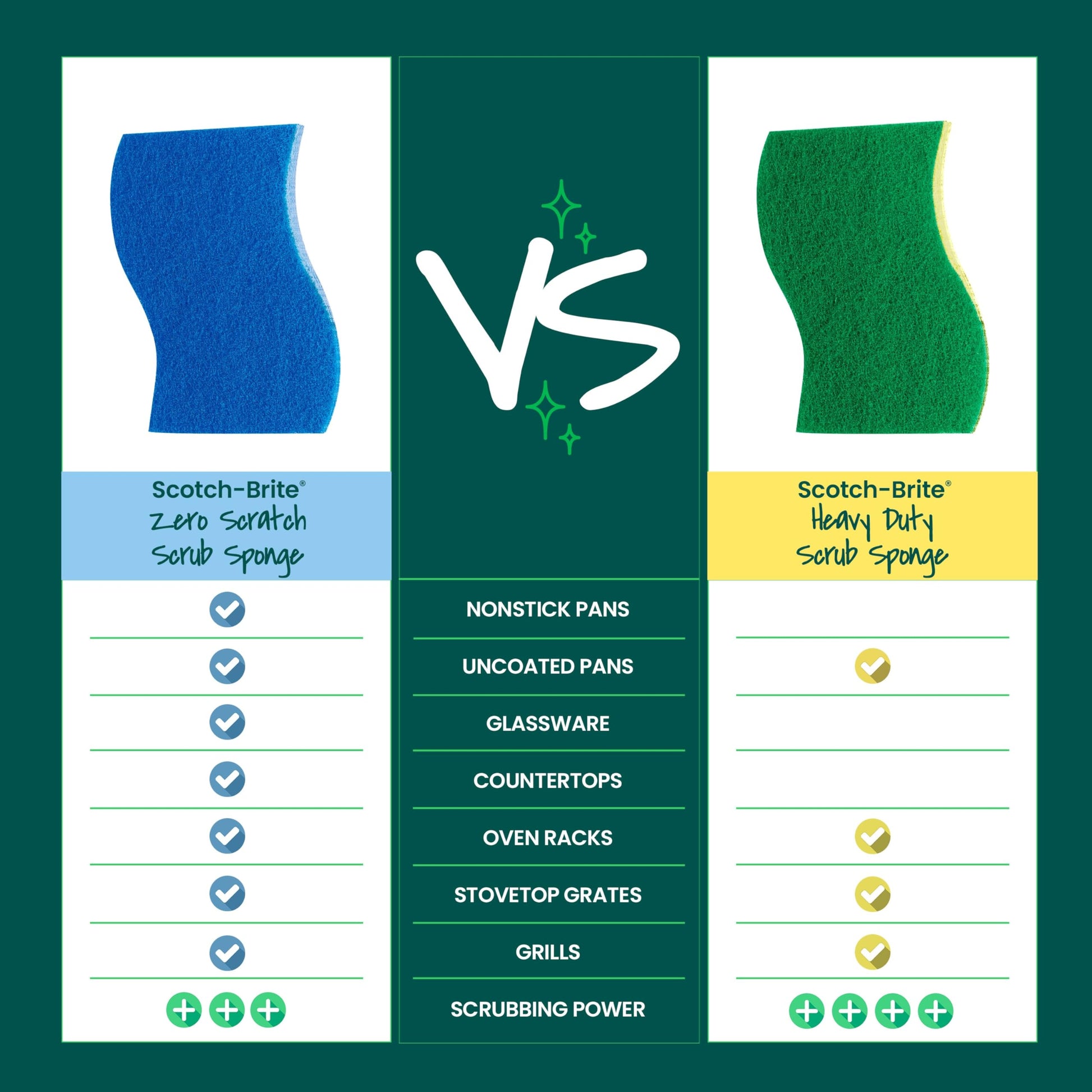 Scotch-Brite Zero Scratch Scrub Sponge, 6 Kitchen Sponges for Cleaning Around the Home, Bathroom & More, Scratch-free Dish Scrubber, Multi-surface Safe, Best for Nonstick Pots and Pans