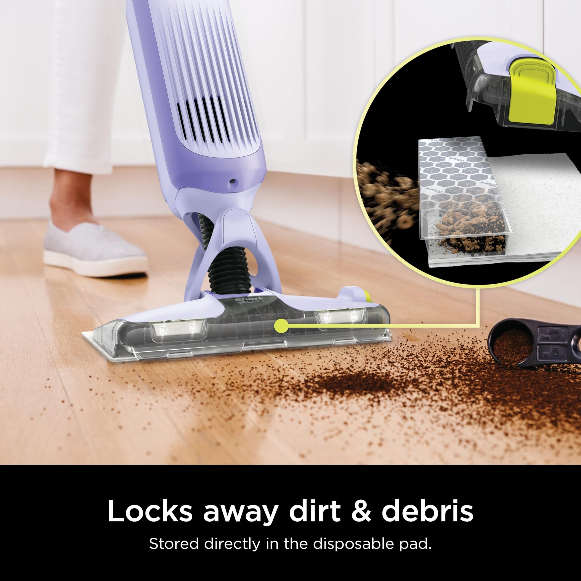 Shark VACMOP Cordless Hard Floor Cleaner, Vacuum and Spray Mop, Powerful Suction, Lightweight, LED Headlights, Includes 4 Disposable Pads, 12oz Multi-surface Cleaning Solution, Lavender, VM252PL
